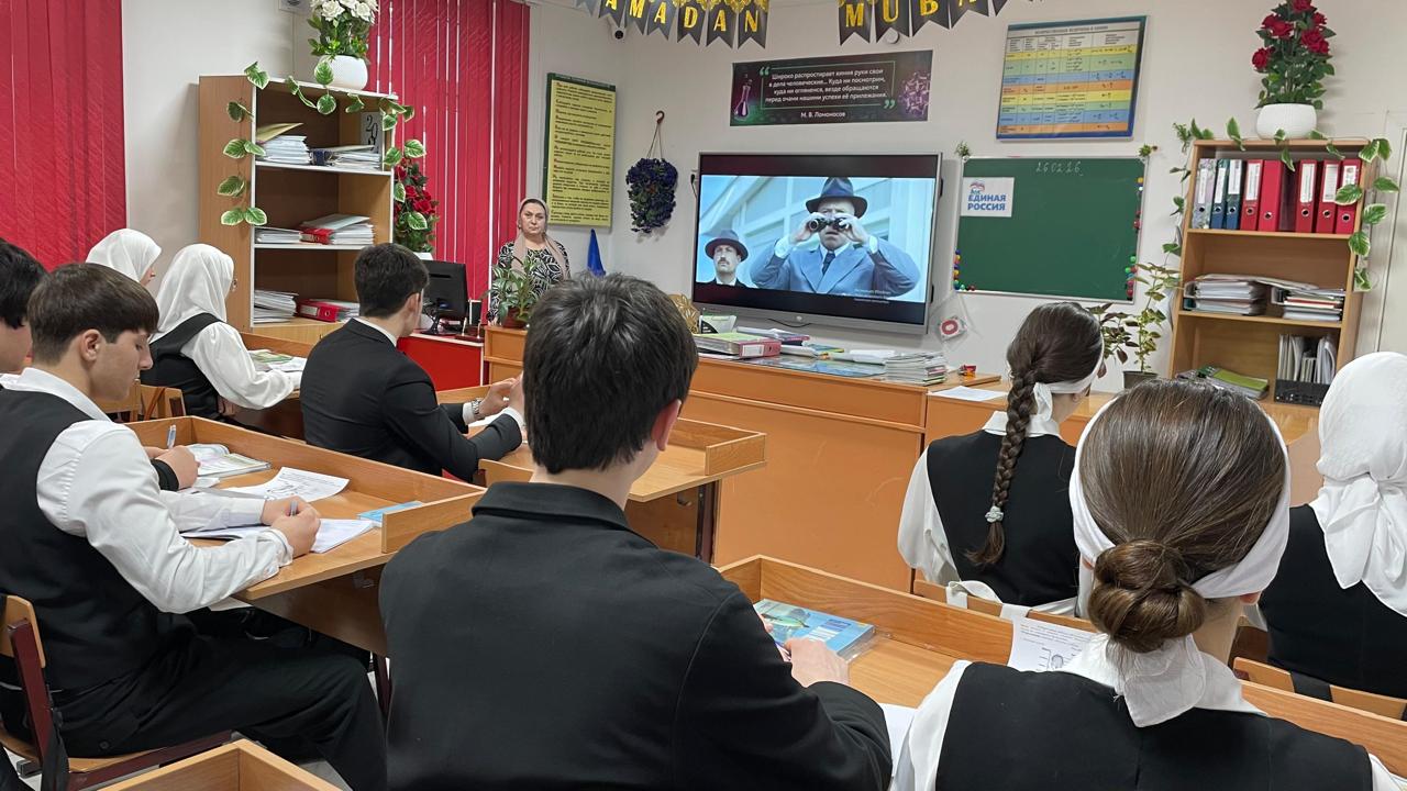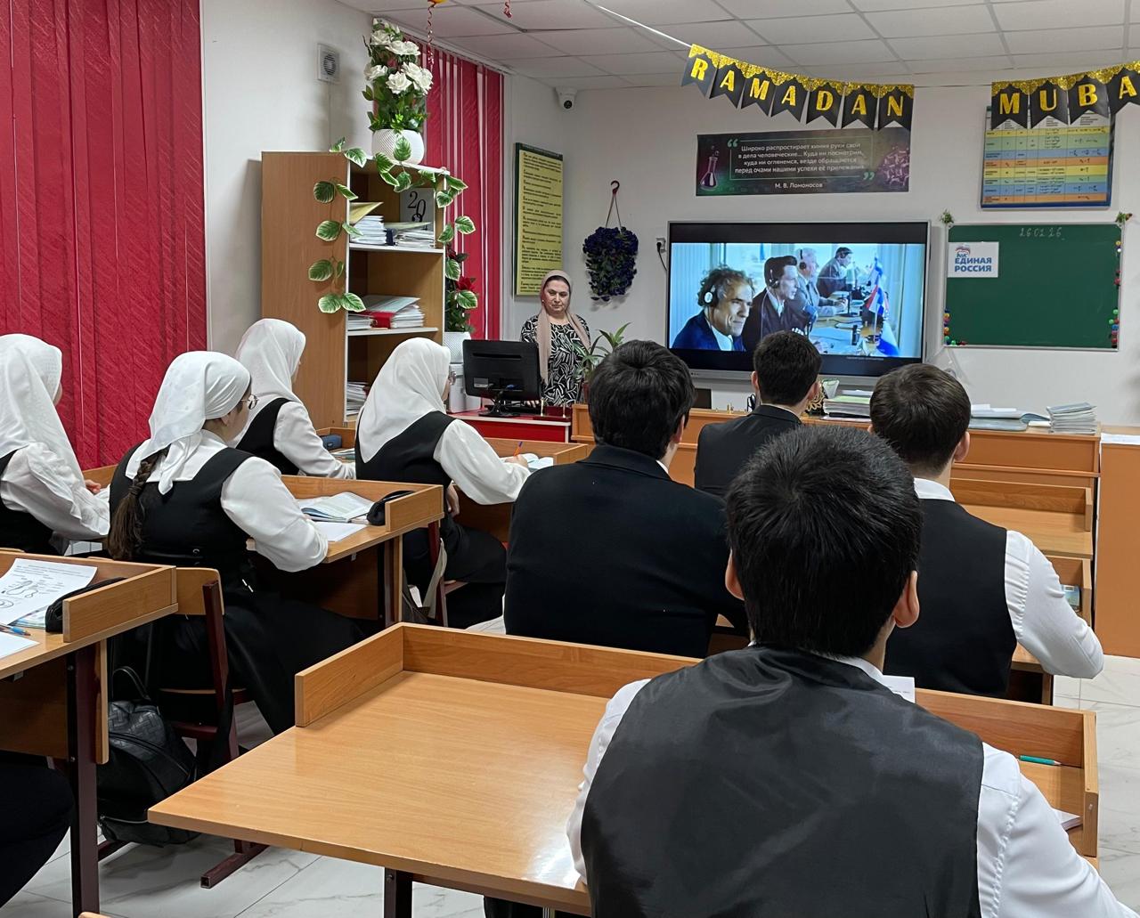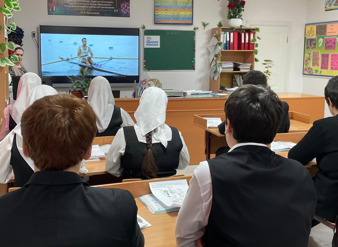 Сегодня, 26 февраля, учащиеся 11а класса приняли активное участие в просмотровых мероприятиях, организованных в рамках Международного фестиваля спортивного кино федерального партийного проекта «Детский спорт». Центральной частью программы стал фильм «Первый на Олимпе», представленный школьникам Чеченской Республики.