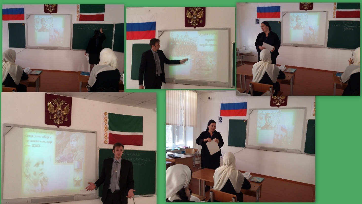 12.02.2016Во исполнение требований военного комиссара Чеченской Республики №1/4 от 08.02.2016г. по военно-профессиональной ориентации обучающихся в рамках информационно-агитационной акции «Есть такая профессия-Родину защищать»