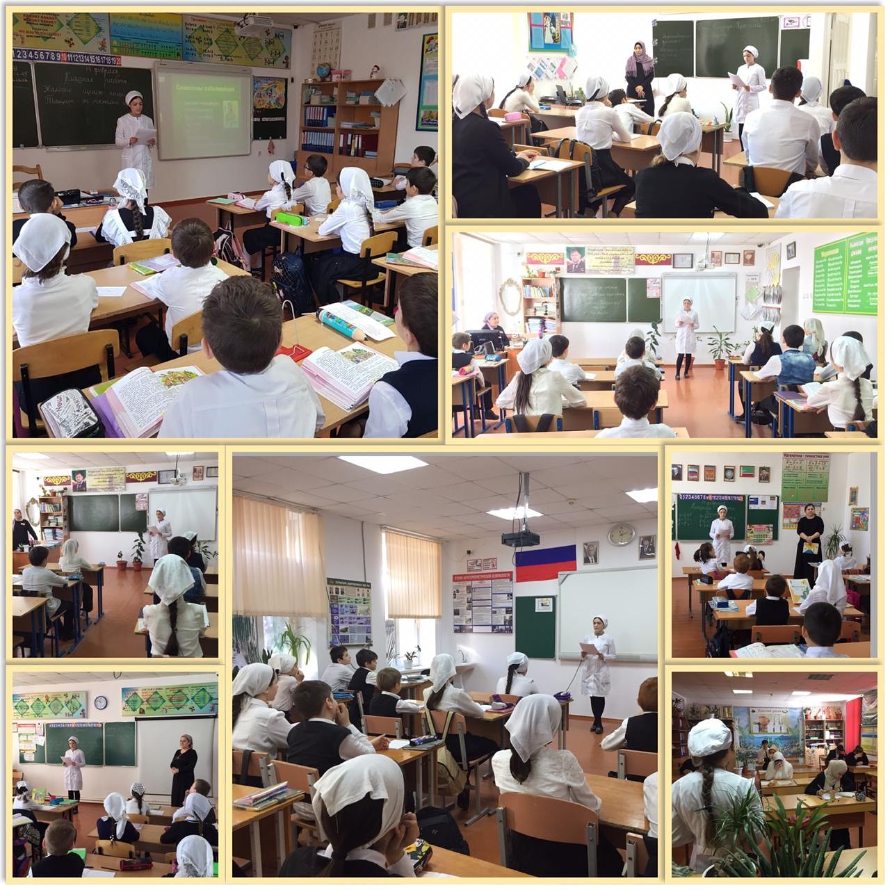 В ходе беседы Айназ Надыровна рассказала учащимся о строении вируса гриппа, путях его распространения и мерах профилактики.