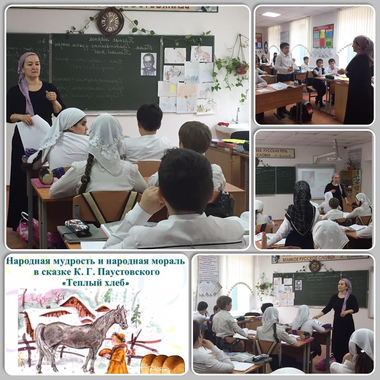 3 марта 2020 года с целью осмысления проблемы нравственности, доброты, заботы о других, как основного качества человека учителем русского языка и литературы Эльдаровой Э.А. в рамках Предметной недели литературы проведён открытый урок в 5б классе на тему: Нравственные уроки сказки К. Г. Паустовского " Теплый хлеб".