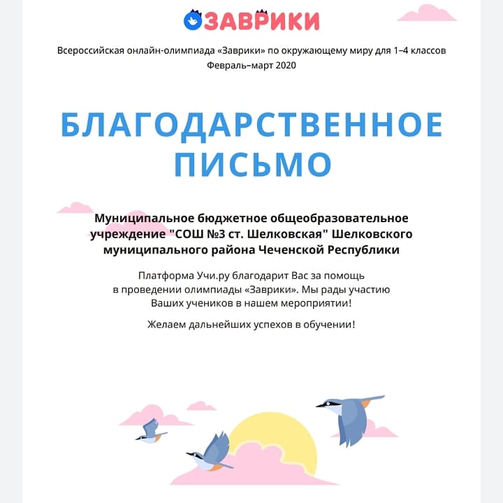 Обучающиеся нащей школы приняли активное участие во Всероссийской онлайн-олимпиаде "Заврики" по окружающему миру для 1-4 классов.