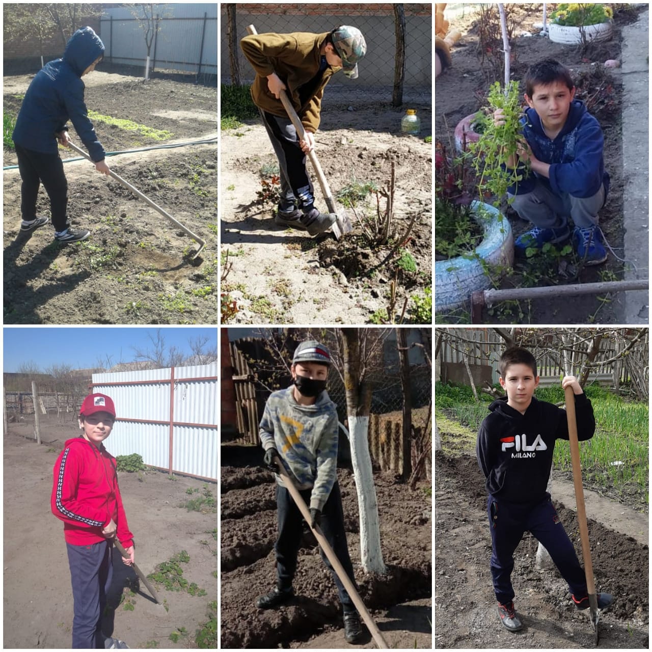 9 апреля 2020 года - сегодня солнечный весенний день и наши мальчики 5 "в" класса МБОУ "СОШ # 3 ст.Шелковская" с прекрасным настроением работают дома на своих участках.Классный руководитель Гаибова А.А.