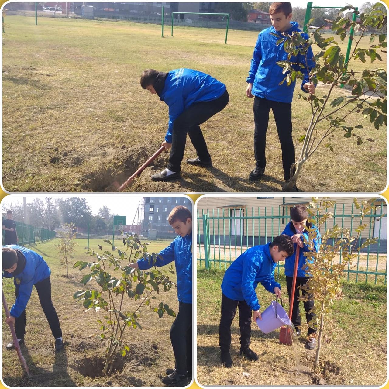 В МБОУ « Шелковская СОШ #3» 12 октября 2020 года прошла акция «Посади и вырасти дерево». Активисты ЕДЮЮ «Юные Кадыровцы» под руководством зам. директора по ВР Хайбулина М.А. высадили саженцы деревьев и внесли свой посильный вклад в озеленение и благоустройство родной школы.