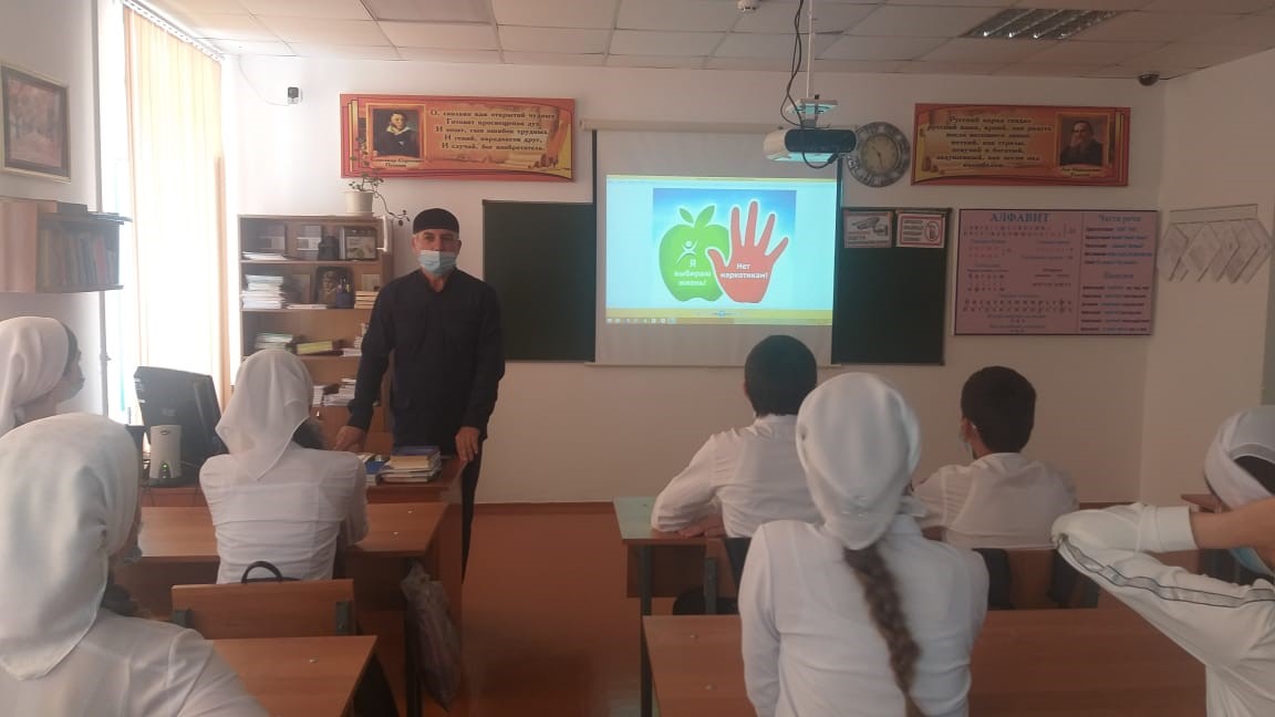 В ходе беседы Абубакар Жораевич рассказал обучающимся, что алкоголизм — это болезнь, основными особенностями которой являются привыкание и зависимость, о том, что иллюзорный мир алкоголя никогда не сделает человека ни независимым, ни яркой индивидуальностью, и чтобы «найти себя» достигается только через раскрытие талантов, которые таятся в каждом человеке, через нелегкий каждодневный труд и целеустремленность в достижении поставленных целей.