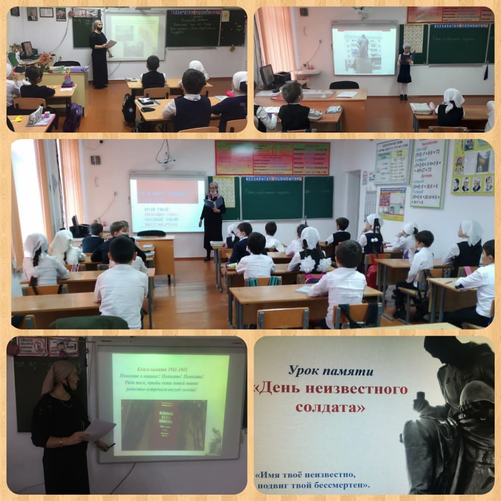 " Шелковская СОШ#3" для обучающихся школы проходит Урок памяти, приуроченный ко Дню Неизвестного Солдата.Эта памятная дата отмечается 3 декабря.Это дань памяти воинам, погибшим в годы Великой Отечественной войны, не только известным героям, но и тем, кто безымянными остались на поле боя.