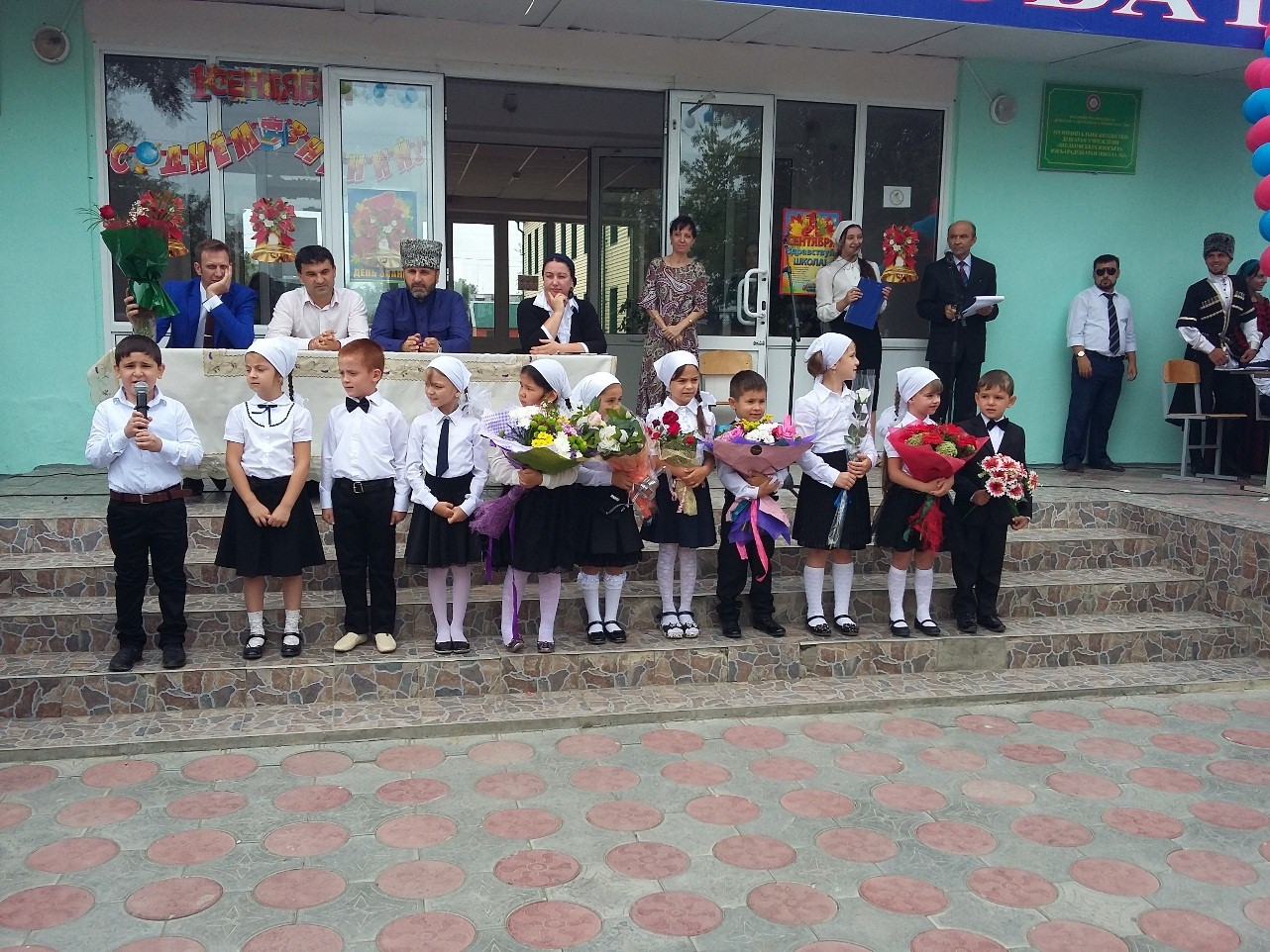 На торжественной линейке присутствовали заместитель Главы Администрации Шелковского муниципального района - Арсанукаев Шамхан Вахаевич и Начальник управления культуры Шелковского Муниципального района, кавалер ордена А.Х. Кадырова - Шамсудинов Эзир-Али Хамсуркаевич.