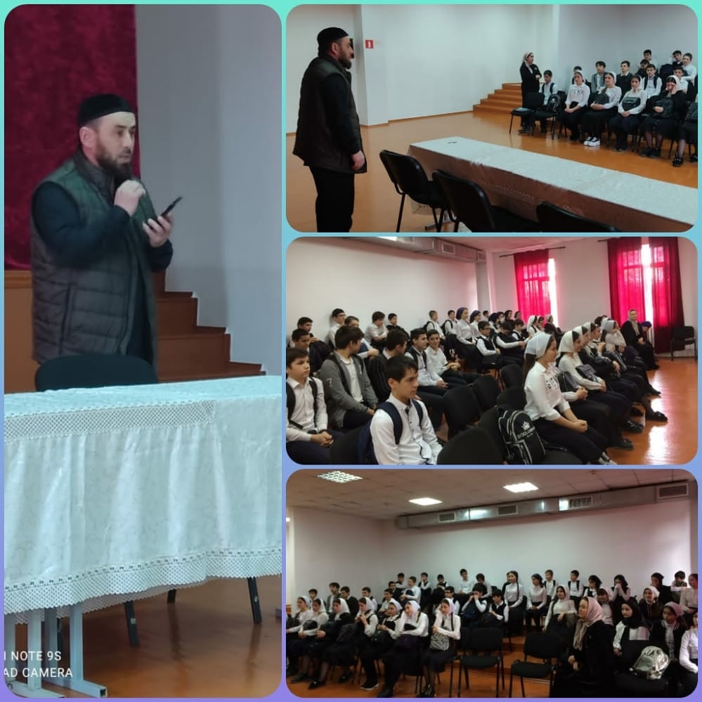 1 марта в МБОУ "Шелковская СОШ #3" в соответствии с Планом работы по реализации Единой Концепции духовно-нравственного воспитания и развития подрастающего поколения Чеченской Республики проведена встреча обучающихся 7-х и 8- х классов с представителем духовенства , имамом ст.Шелковская Кусаевым Нуради.Беседа прошла на тему " Нравственные заповеди Корана".