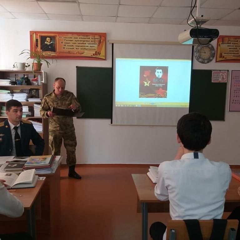 30 апреля 2021 года предверии Дня Победы в МБОУ «Шелковская СОШ #3» военнослужащие лейтенант Ганаев Олег Эльбрусович и заместитель командира 1 минометной батареи воинской части 6904 Шелковского муниципального района провели Урок мужества «Славный сын чеченского народа» для обучающихся 9 «А» класса.