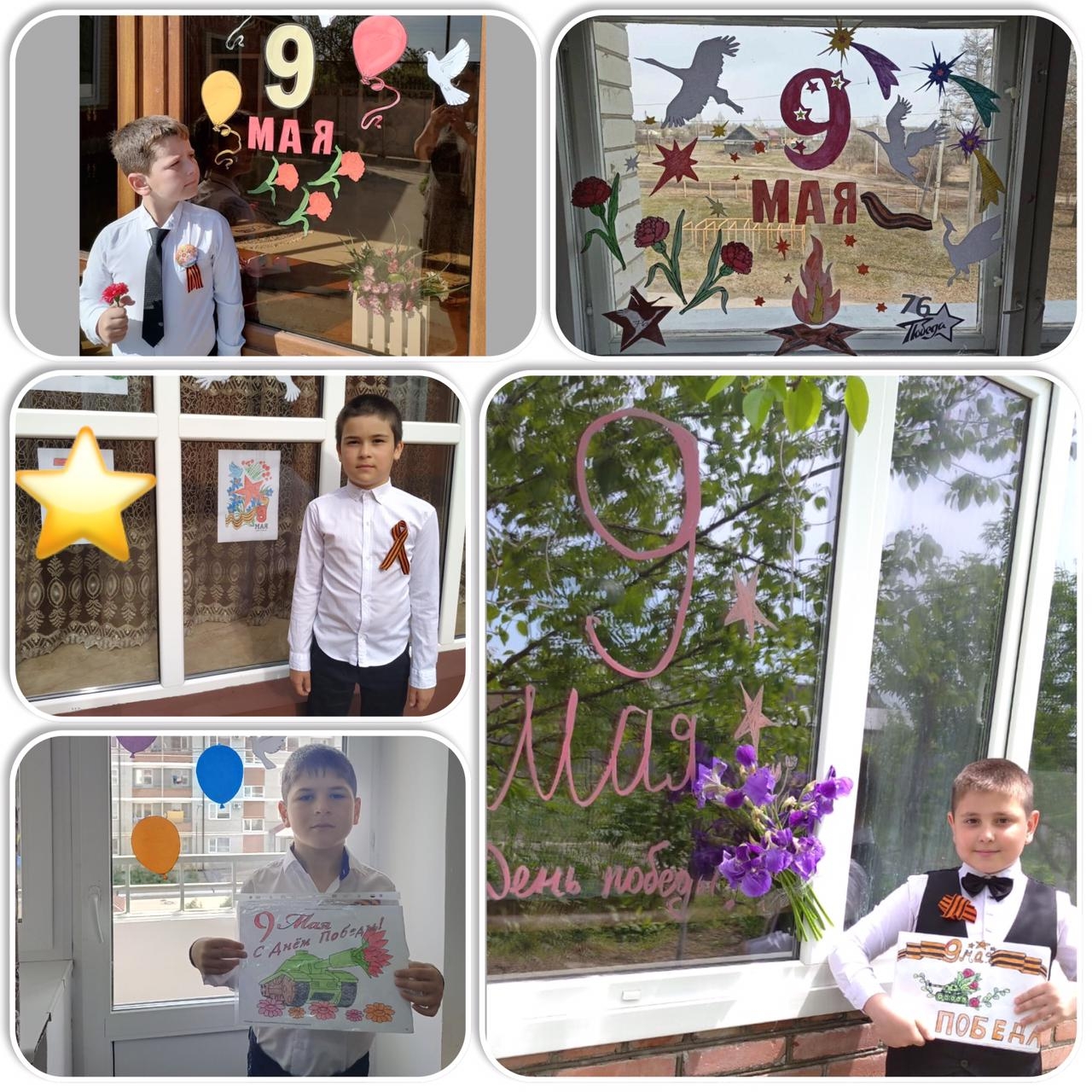 Обучающиеся украсили окна своих домов символами Великой Победы: георгиевскими лентами, красными звездами, словами благодарности в адрес ветеранов.