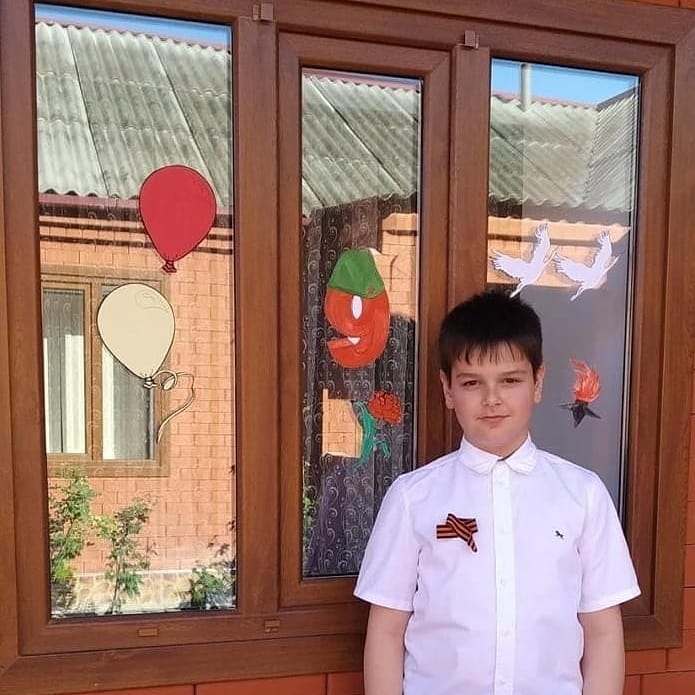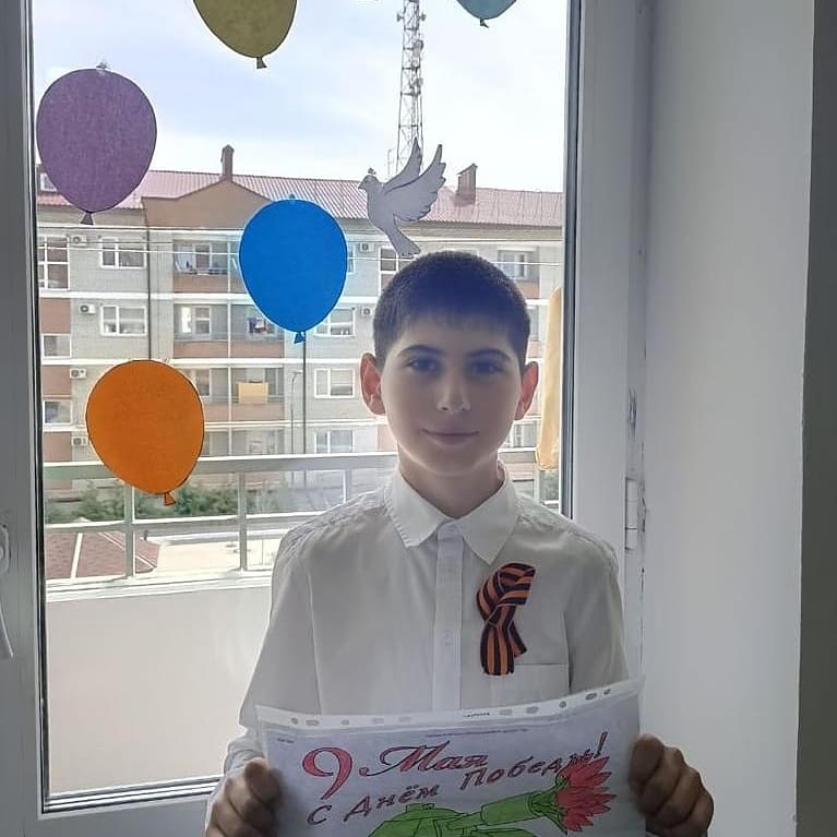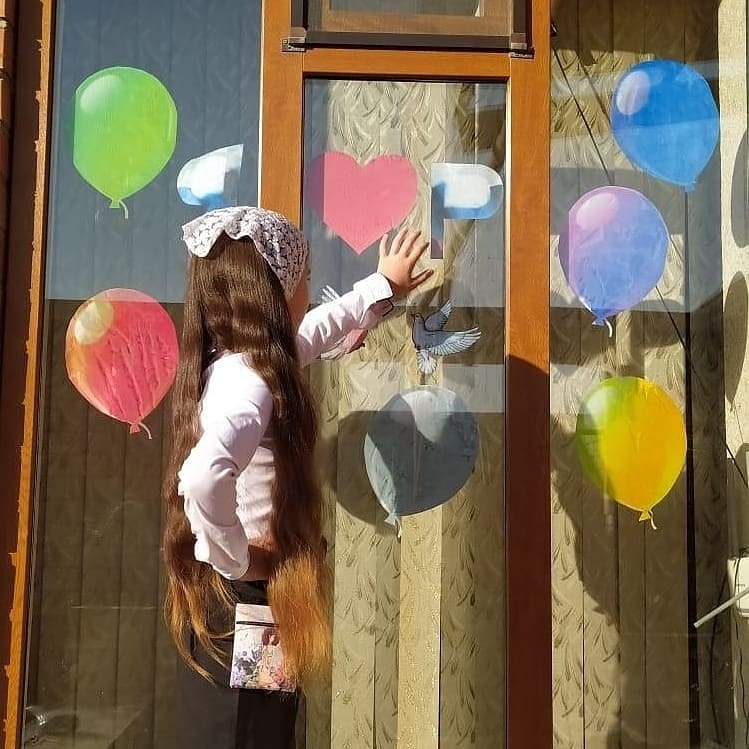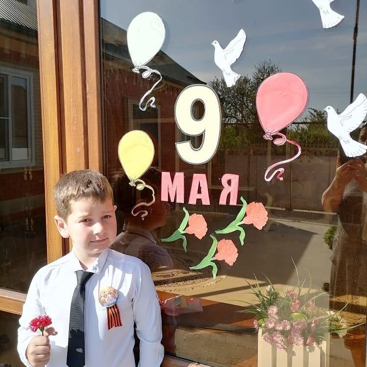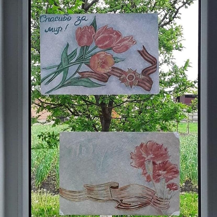 Обучающиеся нашей школы совместно с родители украсили окна своих домов поздравительными надписями, фотографиями, рисунками, шарами, салютами, посвященными Победе советского народа над фашизмом в Великой Отечественной войне. Из бумаги создали георгиевские ленты, цветы, голубей, журавлей; совместным творческим делом взрослые напомнили детям о смысле священной даты.