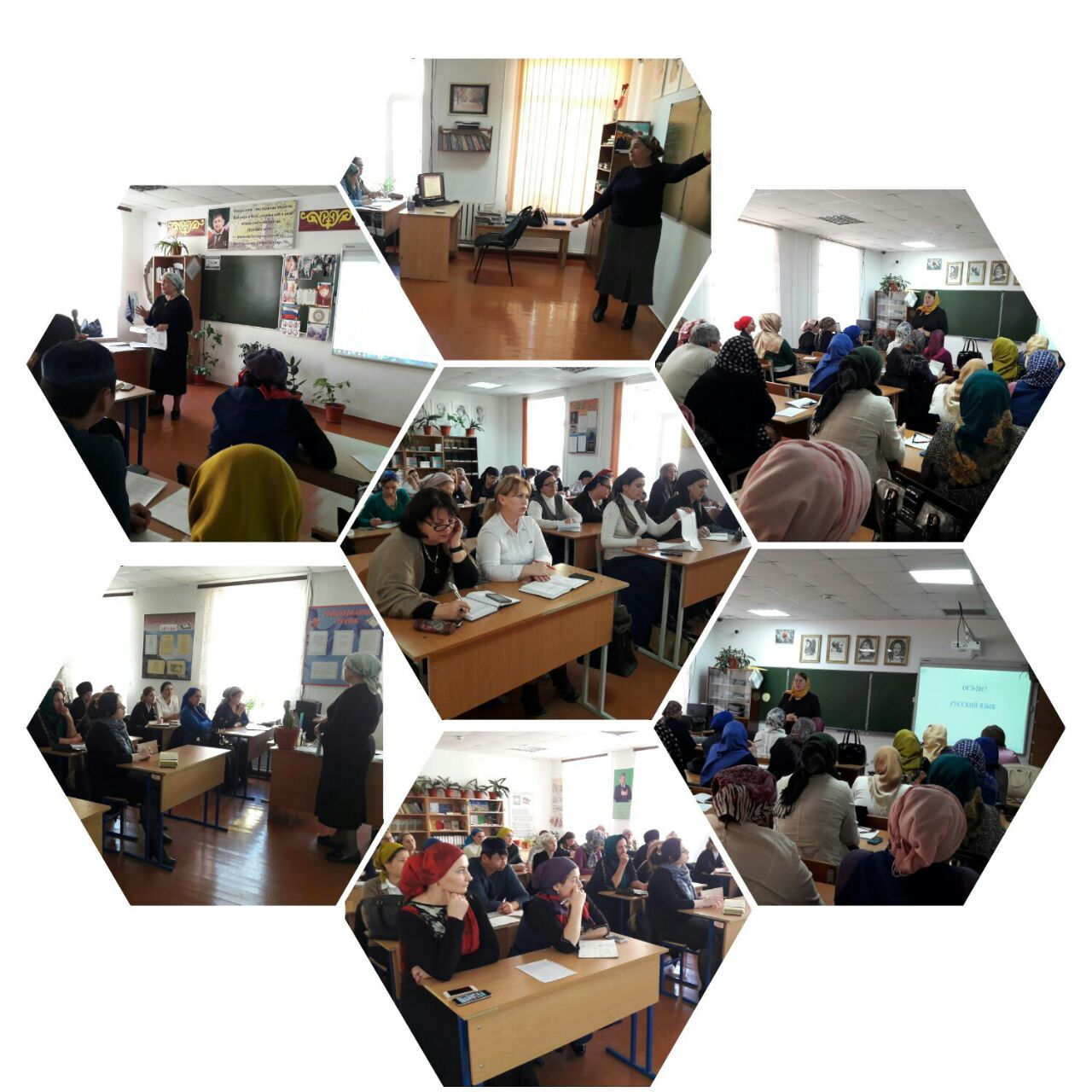 в ходе которого зав.кафедрой математики Атаева С.У.,ст.преподаватель кафедры русского языка и литературы Вараева Я.Э. и зав.кафедрой истории и обществознания Горчханова Е.С. продемонстрировали алгоритм работы на уроках,а также ответили на вопросы присутствующих.