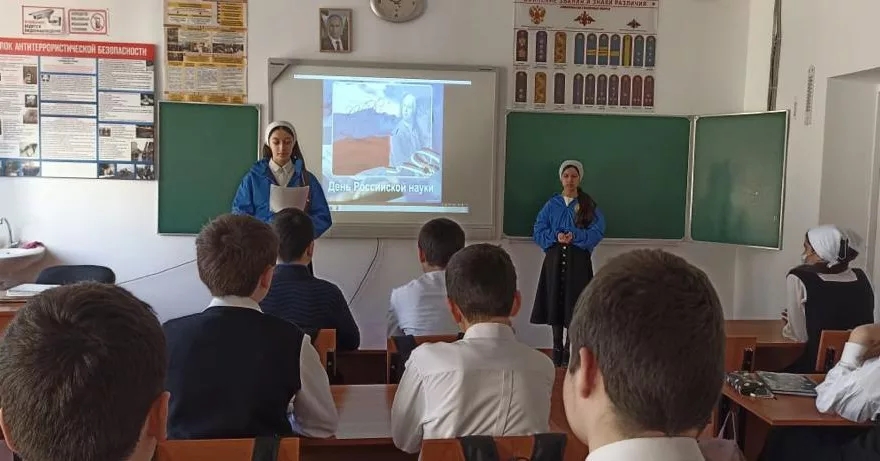 В преддверии Дня российской науки в МБОУ «Шелковская СОШ N3» активисты ЕДЮО «Юные Кадыровцы» с целью расширения представлений обучающихся об истории и достижениях российской науки, а также уважительного отношения к людям умственного труда, чувства патриотизма, гордости за свою страну, свой народ подготовили и провели информационный час для обучающихся 7В класса.