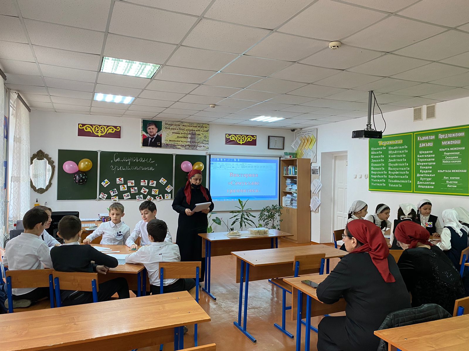 18 февралехь 2022 шарахь МБОУ «Шелковски ЮЮШ N3». Д1адоьду нохчийн меттан к1ира. 5 А классан дешархошца «Самукъане грамматика» темина йиллина йолу мероприяти, д1аяьхьира хьехархочо Джабаева Х.И.