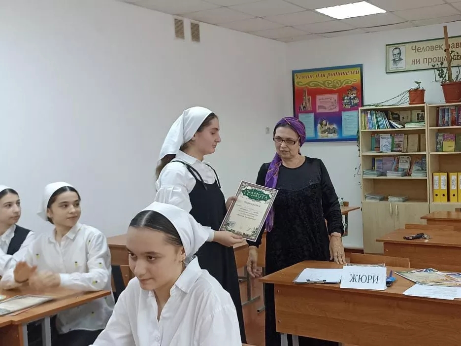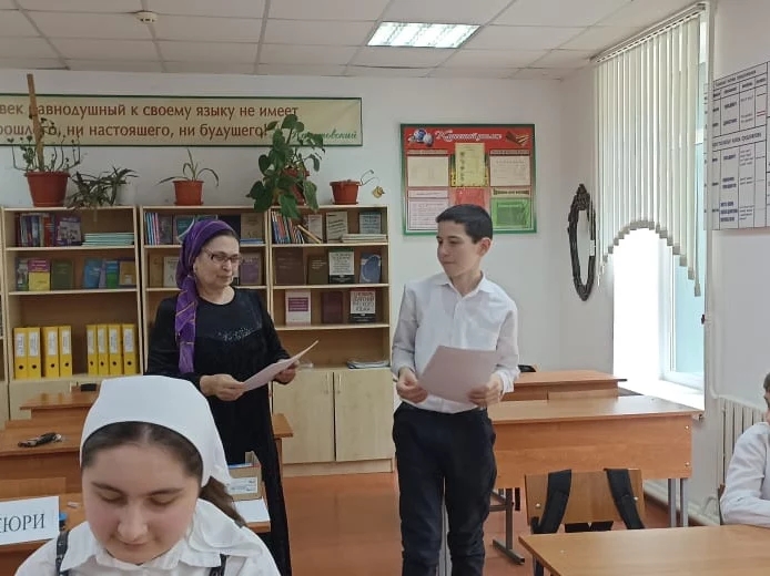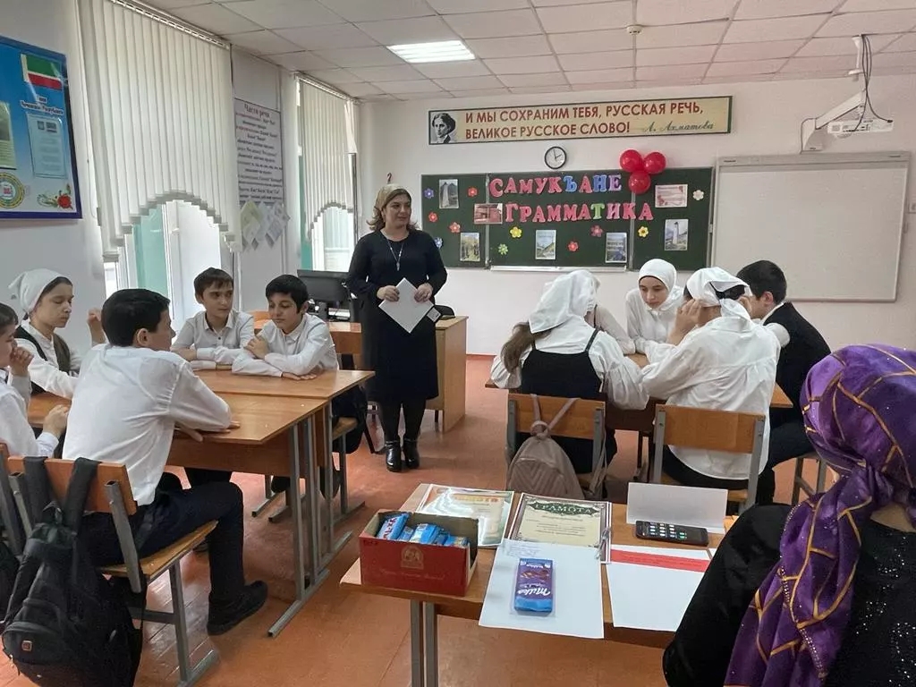 19 февралехь 2022 шарахь МБЮУ «Шелковски ЮЮШ N3». Д1адоьду нохчийн меттан к1ира. 7 классан дешархошца «Самукъане грамматика» темина йиллина йолу классал арахьара йолу мероприяти, д1аяьхьира хьехархочо Гаибова А.А.