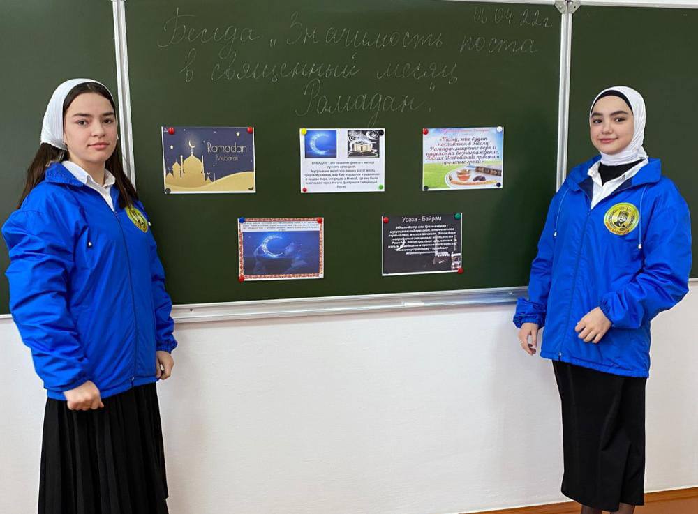 06.04.20226 апреля 2022 года активисты ЕДЮО «Юные Кадыровцы» МБОУ «Шелковская СОШ N3”с целью формирования представлений обучающихся о традициях соблюдения поста у мусульман провели беседу в 9Г классе.
