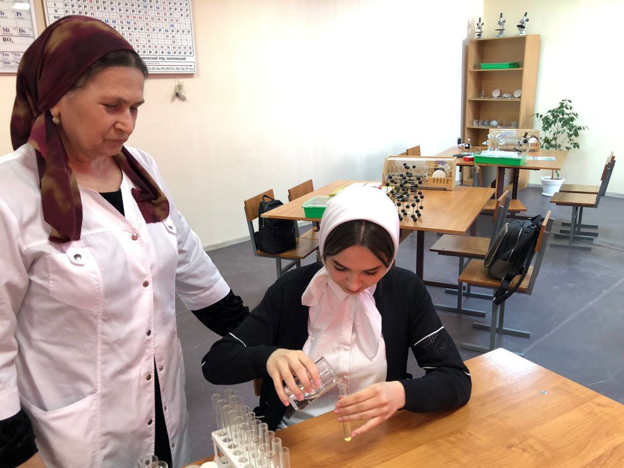 Мавсарова Сияда Алавудиновна, считает, что работа учащихся в лабораториях химии, физики и биологии направлена на формирование современных компетенций и навыков у учащихся при выполнении практических работ.