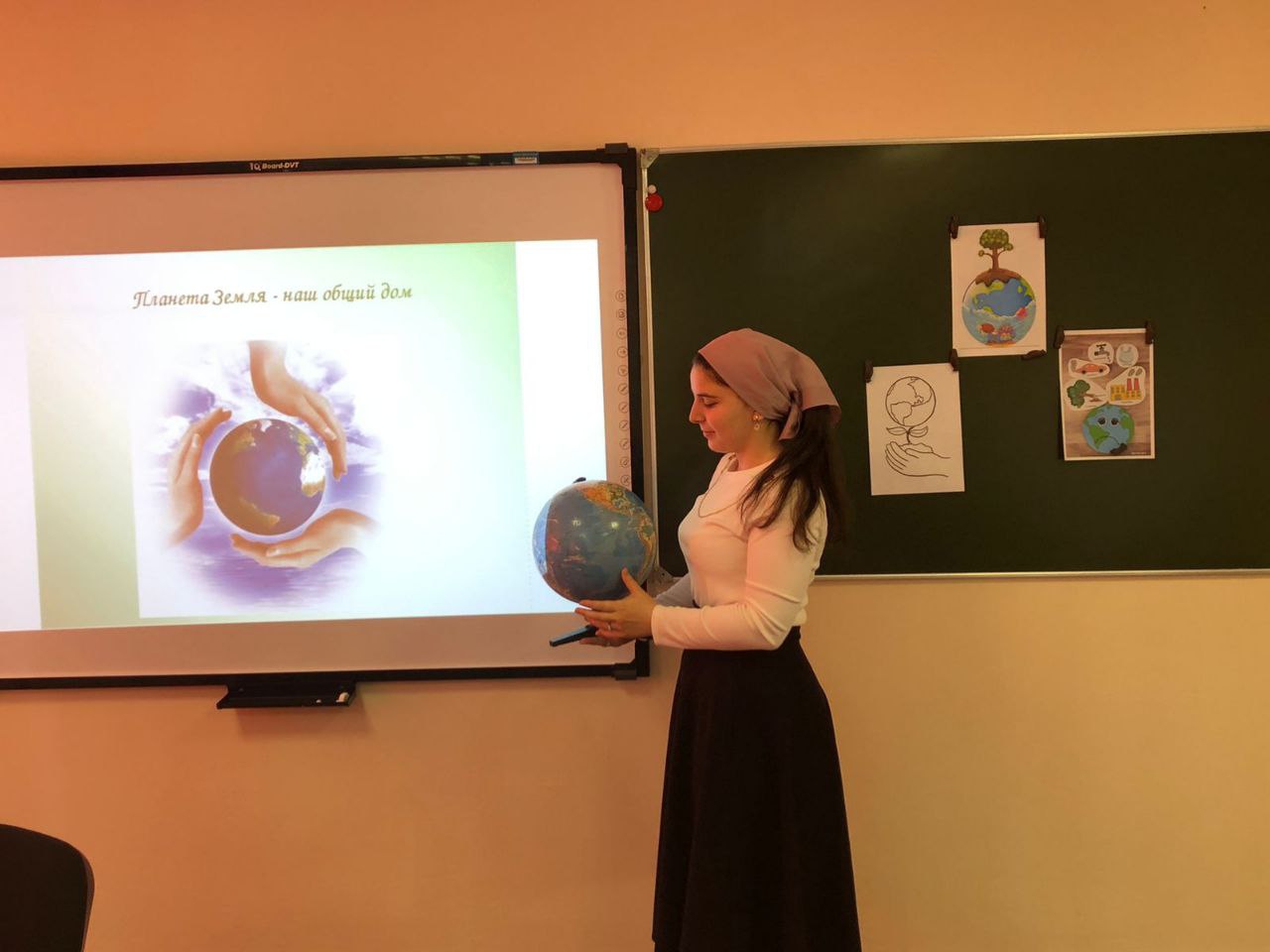 5 мая 2022 года учитель химии и биологии Мавсарова Сияда Алавудиновна с учащимися 11 «а» класса провела защиту проекта на тему: «Земля - наш общий дом». При проведении защиты проекта с использованием наглядного материала и современного оборудования учащиеся рассказали о воспитании гуманного отношения к природе, чувстве ответственности за все живое на Земле.