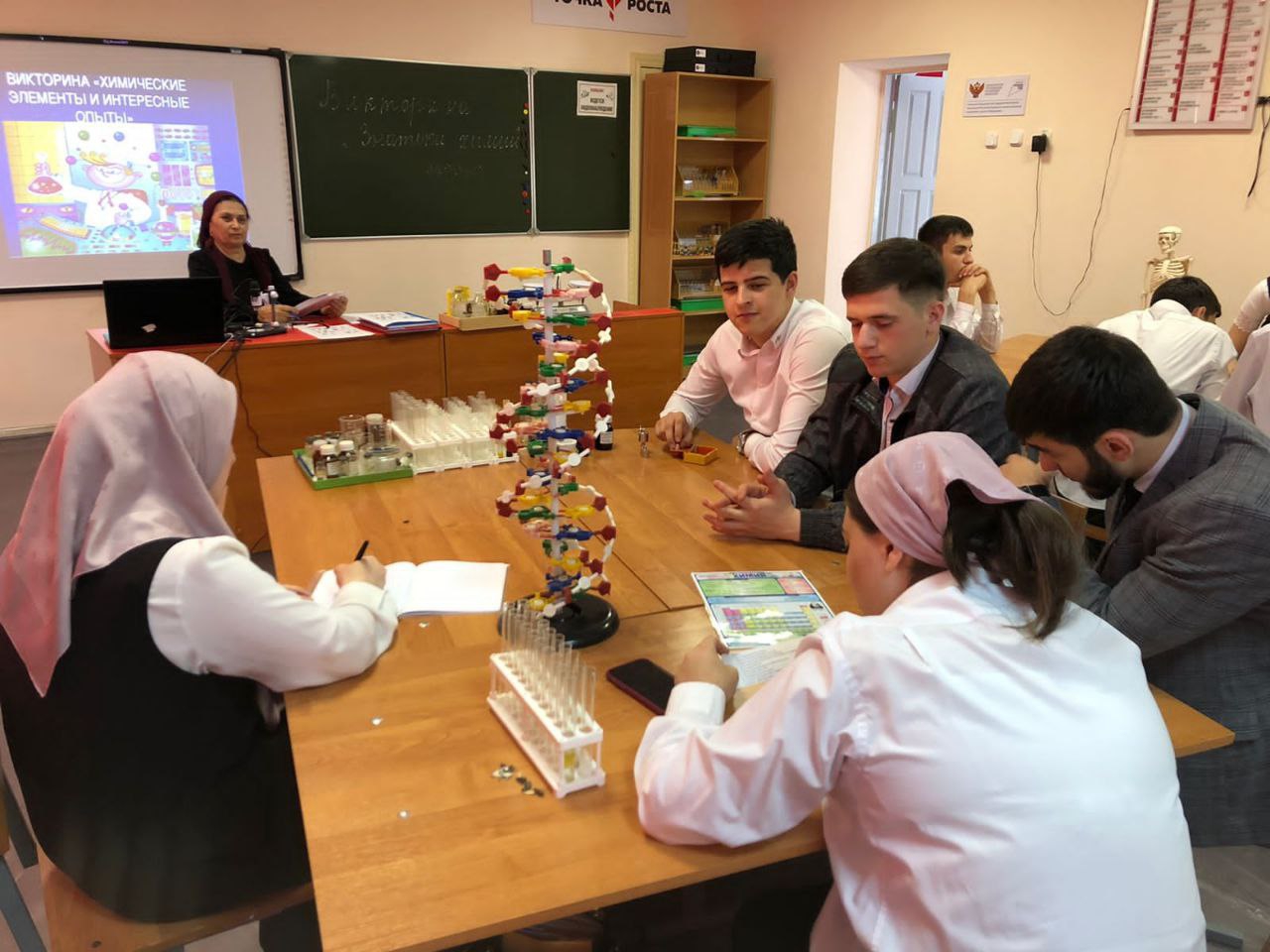 16 мая 2022 года учитель химии и биологии Мавсарова Сияда Алавудиновна, провела интеллектуальную викторину на тему: «Знатоки химии», при проведении которой проверялся не только базовый уровень знаний химии, но и знания, направленные на стимулирование творческого роста обучающихся.