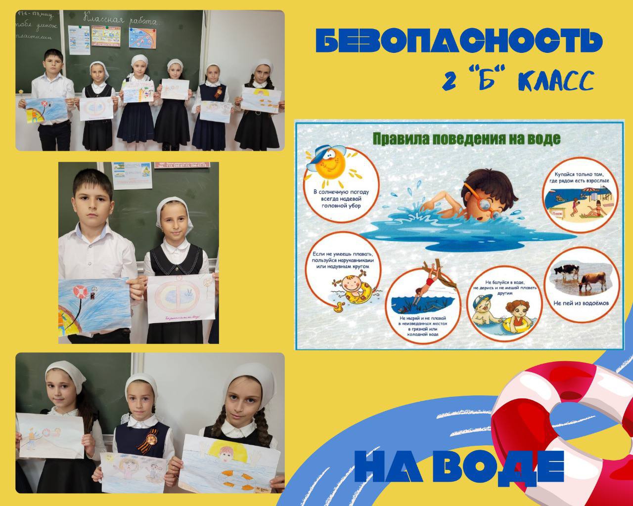 17 мая 2022 года с целью формирования у детей представления о правилах безопасного поведения на воде в теплое время года, раскрыть причины несчастных случаев, дать представление о действиях в случае опасности, воспитывать осторожность и аккуратность в поведении на воде, Маммаева Миси Маджидовна в преддверии летних каникул провела классный час во 2 «Б» классе на тему: «Безопасность на воде».