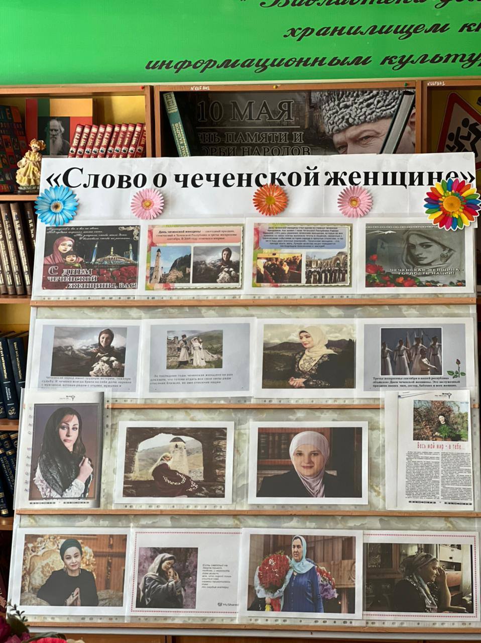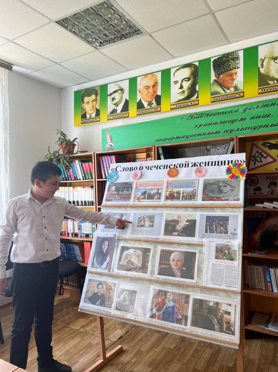 В МБОУ «Шелковская СОШ N3» библиотекарь Джабаева М.И. оформила книжную выставку и провела беседу на тему: «Слово о чеченской женщине», приуроченную ко Дню чеченской женщины.