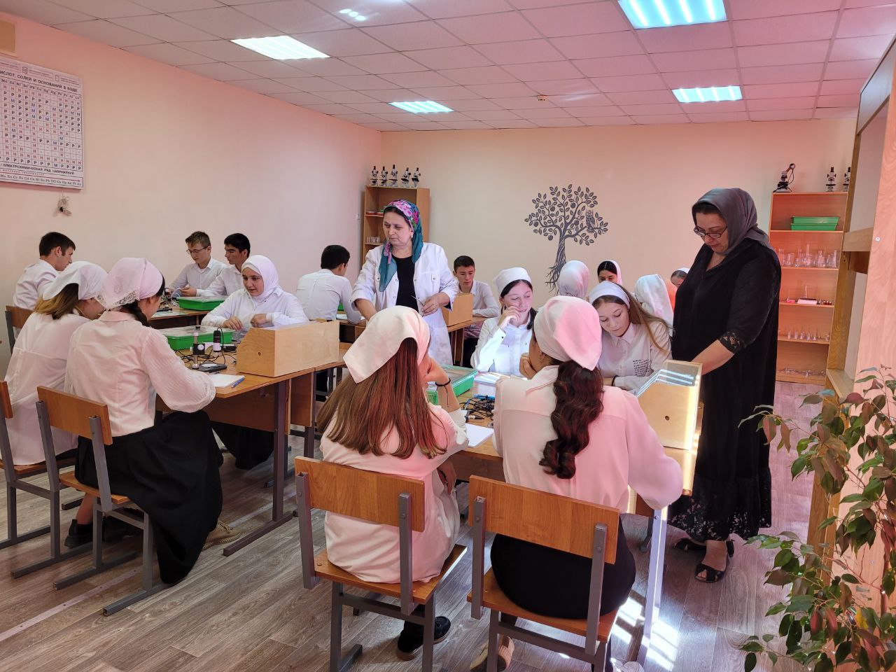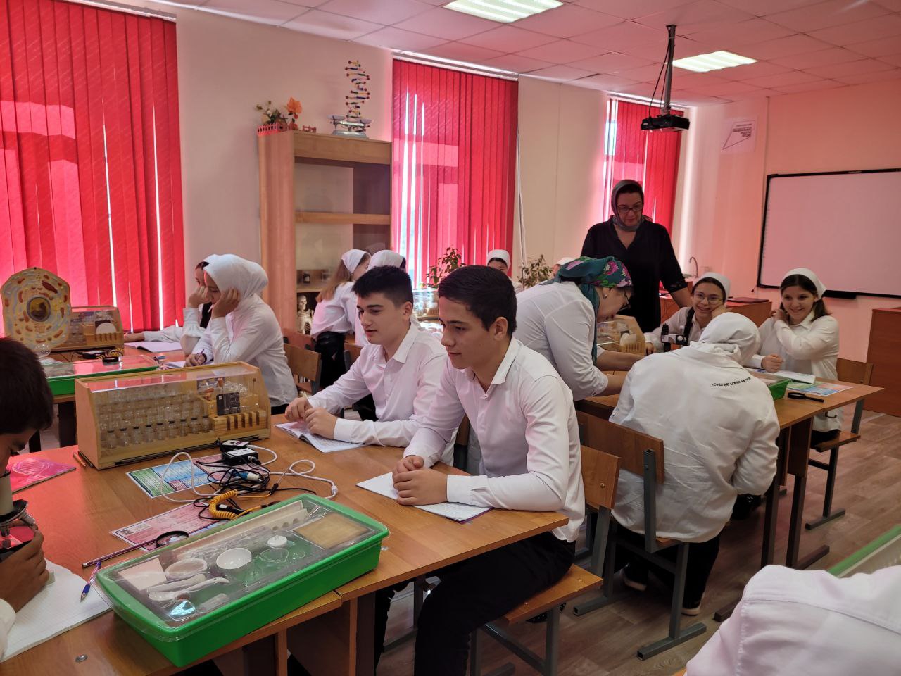 5 октября 2022 года учитель химии и биологии Мавсарова Сияда Алавудиновна в рамках подготовки к ОГЭ с обучающимися 9 «а» класса провела урок биологии на тему: «Строение клетки», при проведении которого учащиеся, используя микроскопы, влажные микропрепараты, таблицы, муляжи, обобщили теоретический материал и закрепили умения в решении заданий КИМ ОГЭ №6-9.