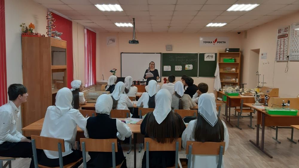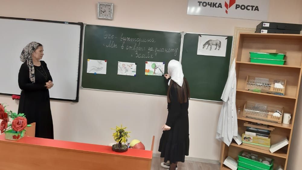 13 декабря 2022 года руководитель Центра «Точка роста» учитель химии и биологии Мавсарова Сияда Алавудиновна в рамках внеурочной деятельности с учащимися 9 «б» класса провела эко-викторину на тему: «Мы в ответе за планету Земля», при проведении которой были проверены не только экологические знания обучающихся, но и через эмоциональный настрой сформирован устойчивый интерес и бережное отношение к природе, развиты сообразительность и логическое мышление.