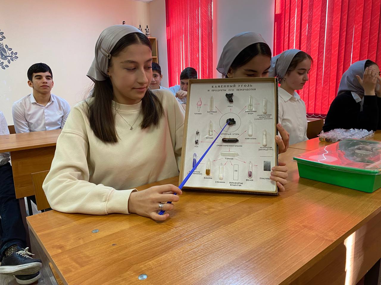 16 января 2023 года учитель химии Мавсарова Сияда Алавудиновна провела с обучающимися 10 «а»класса урок-исследование на тему: «Природные источники углеводородов, при проведении которого обучающиеся научились, используя наглядный и демонстрационный материал, находить на карте и глобусе географические регионы с запасами нефти и природного газа, а также приобрели навыки коммуникативной культуры и умения сотрудничать при работе в группе.