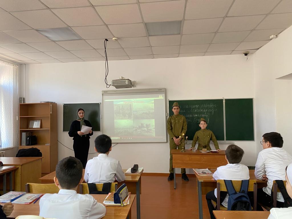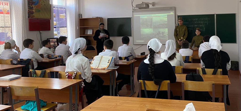 Тарлаева Хадижат Мовладиевна, учитель истории МБОУ «Шелковская СОШ № 3» провела для обучающихся 6-Г класса - час памяти «Для подвига забвенья нет», рассказала ребятам о тяжелых испытаниях, выпавших на долю жителей осажденного закрытого города Ленинграда: о голоде и холоде, о детях и женщинах, работавших наравне с мужчинами на заводах, о защите и обороне Ленинграда советскими солдатами.Также ребята услышали историю ленинградской школьницы Тани Савичевой, которая во время блокады вела дневник, содержащий девять страшных строк: каждая строка посвящена смерти одного из близких.Блокада Ленинграда длилась 871 день. Это самая продолжительная и страшная осада города за всю историю человечества. 18 января 1943 года в ходе наступательной операции советских войск была прорвана блокада Ленинграда, которая длилась с 8 сентября 1941 года.27 января 1944 года после успешной операции «Январский гром» Ленинград был полностью освобожден.