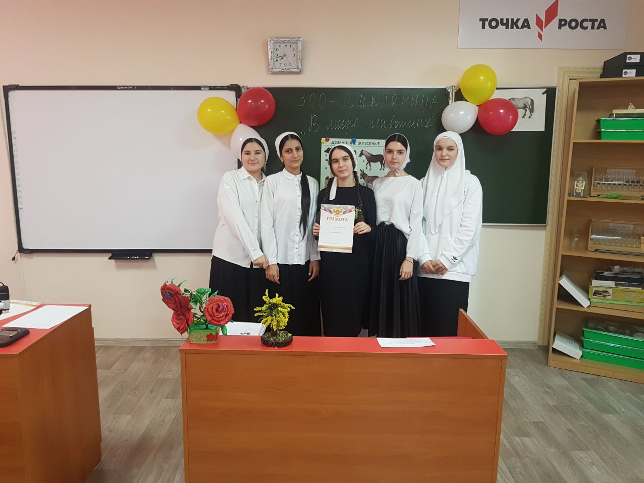 26 января 2023 года в рамках проведения предметной недели химии и биологии руководитель Центра «Точка роста» учитель химии и биологии Мавсарова Сияда Алавудиновна для обучающихся 9-х классов провела зоо-викторину «В мире животных» с целью развития творческих способностей, воспитания любви к живой природе, воспитания чувства взаимопомощи, доброжелательности, развития коллективных навыков в игре.