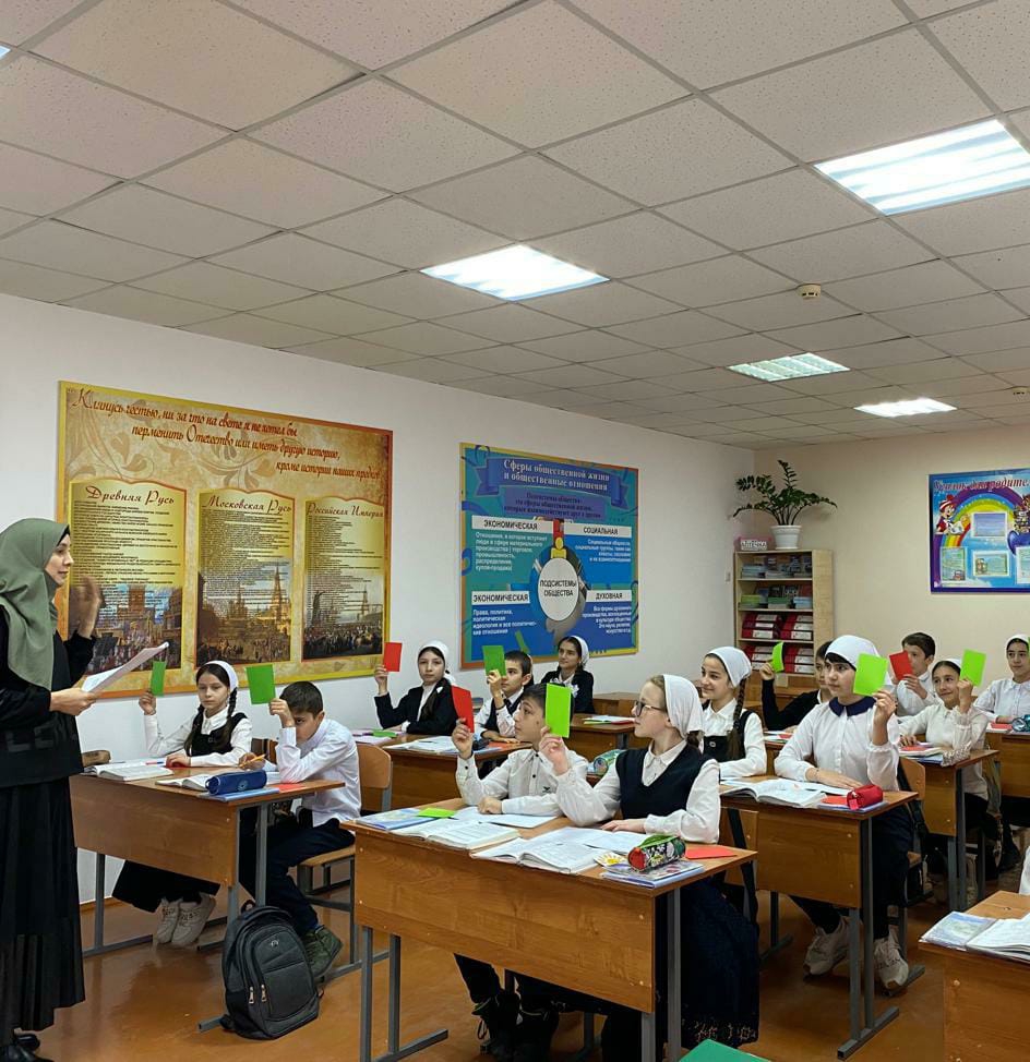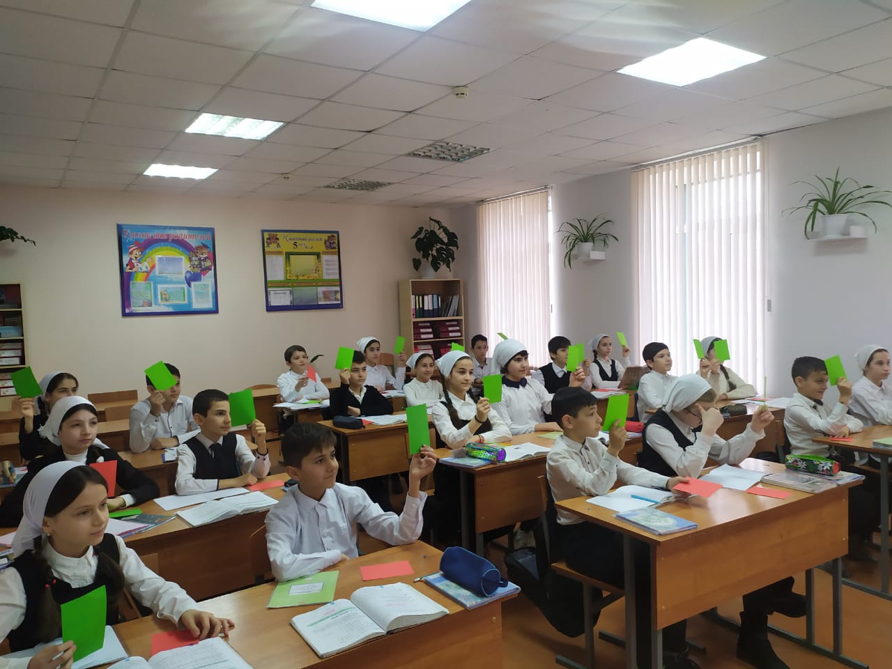 Очередная учебная неделя в МБОУ "Шелковская СОШN3" началась с открытого урока математики в 5"г" классе на тему:"Деление дробей" учитель-Айтукаева Х.З.
