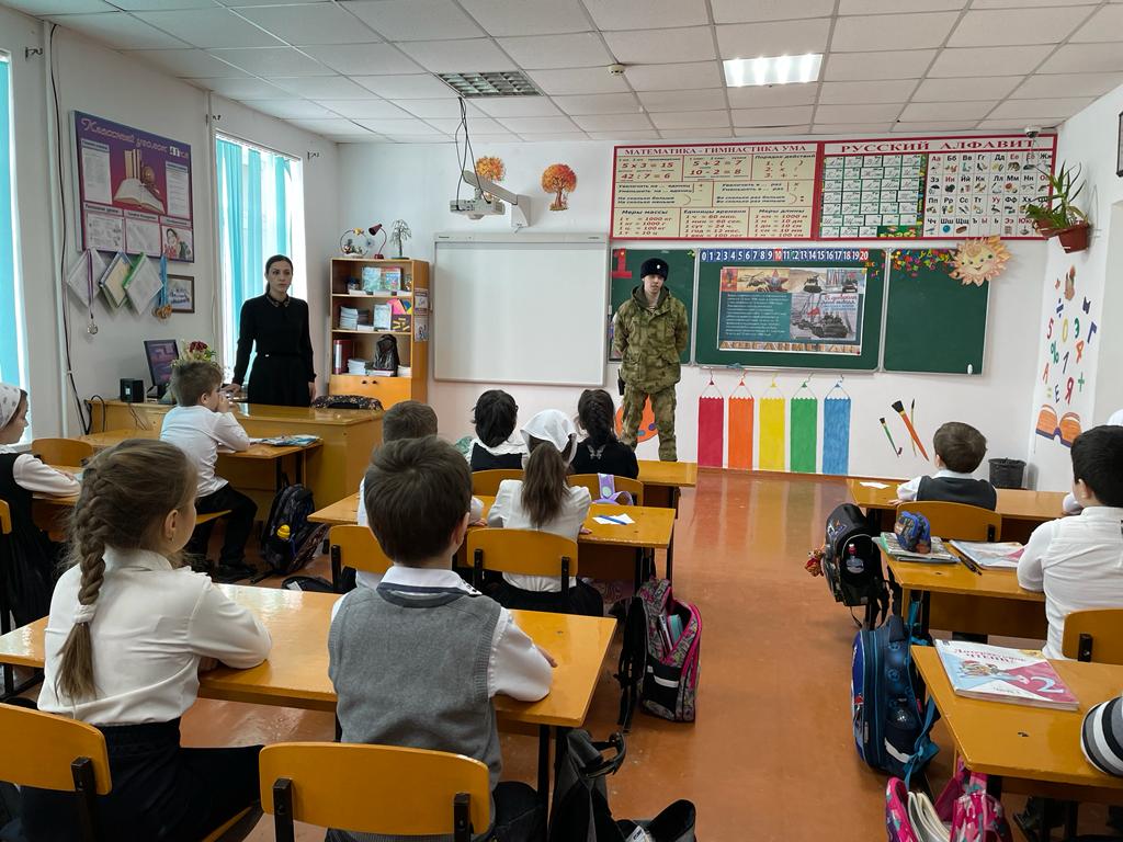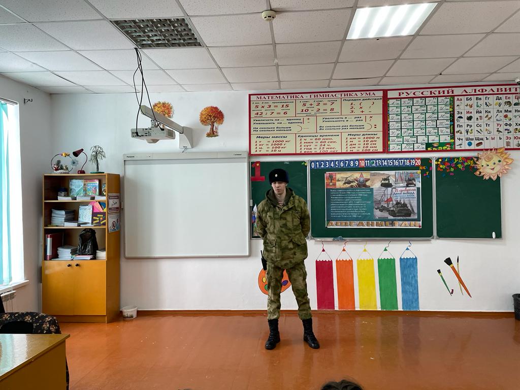 15 февраля 2023 года Янин Е.В., командир взвода управления минометного батальона в/ч 6499 ст.Шелковская для обучающихся 2-Г класса МБОУ «Шелковская СОШ N3» провел урок мужества, посвященный 34-годовщине вывода Советских войск из Афганистана.