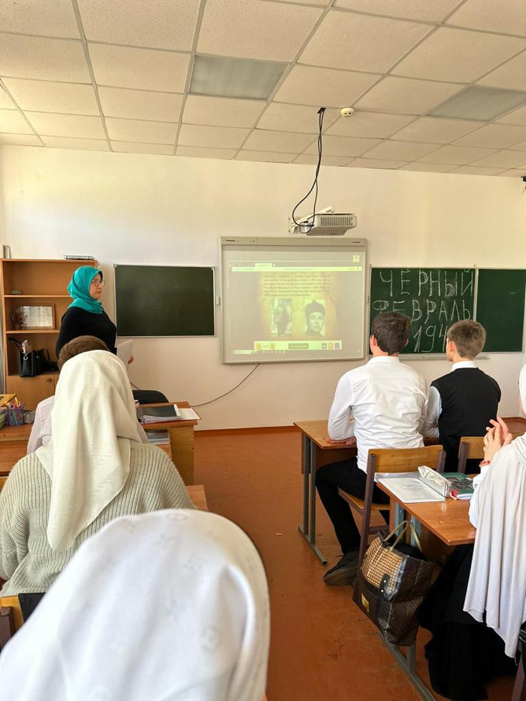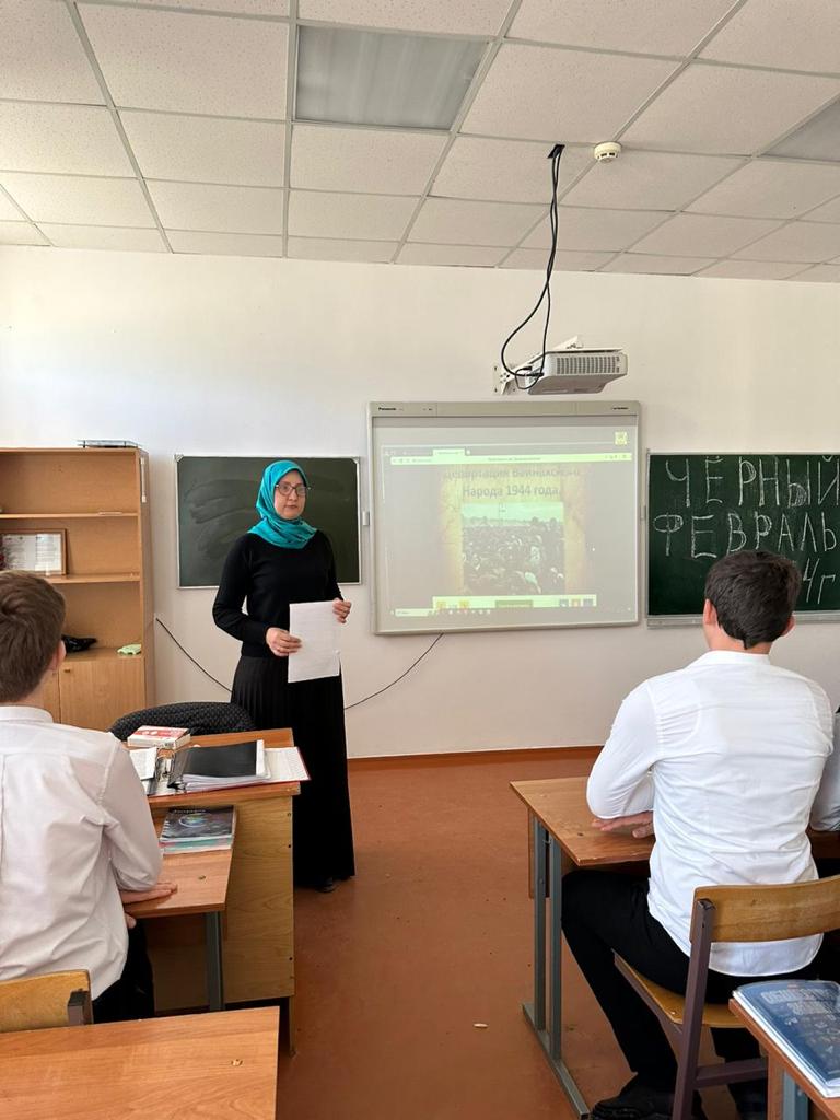 20 февраля 2023 года Мусхаджиева Бирлант Масихаджиевна, провела урок истории в 9-В классе МБОУ «Шелковская СОШ N3”, посвященный трагической дате выселения чеченцев и ингушей в Казахстан и Среднюю Азию в 1944 году, который трагично вспоминают 23 февраля.23 февраля – это одна из самых трагических страниц истории чеченского народа.