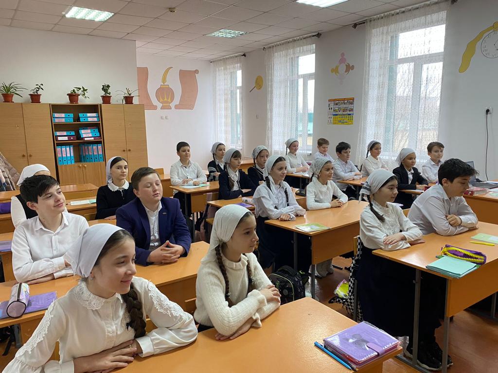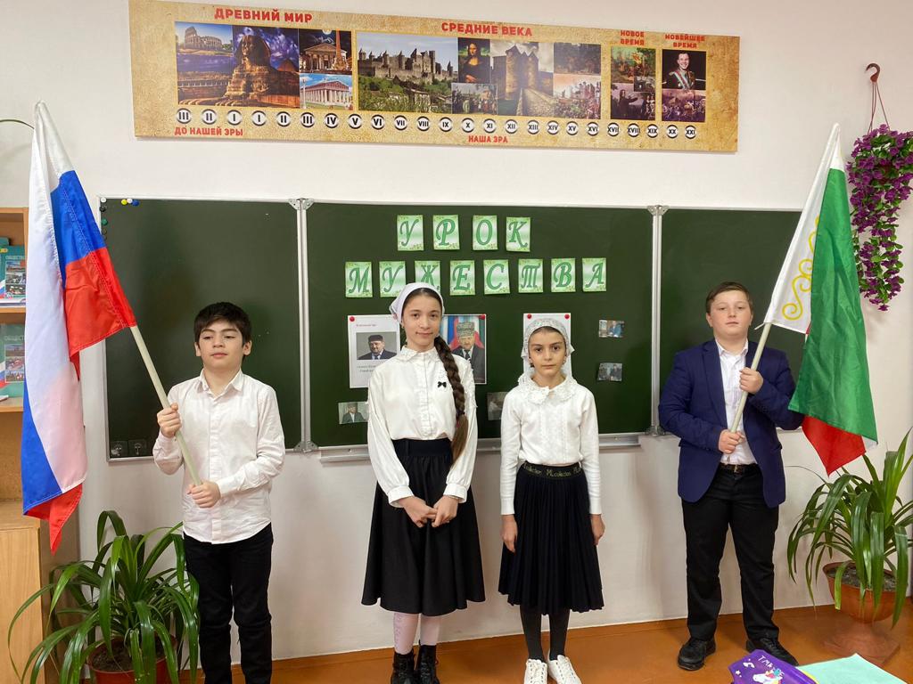 22 февраля 2023 года активисты РДДМ «Движение первых» под чутким руководством учителя истории и обществознания Тарлаевой Хадижат Мовладиевны среди обучающихся 5-х классов провели Урок мужества, посвящённый жизни и деятельности Первого Президента ЧР, героя России А.А.Кадырова.