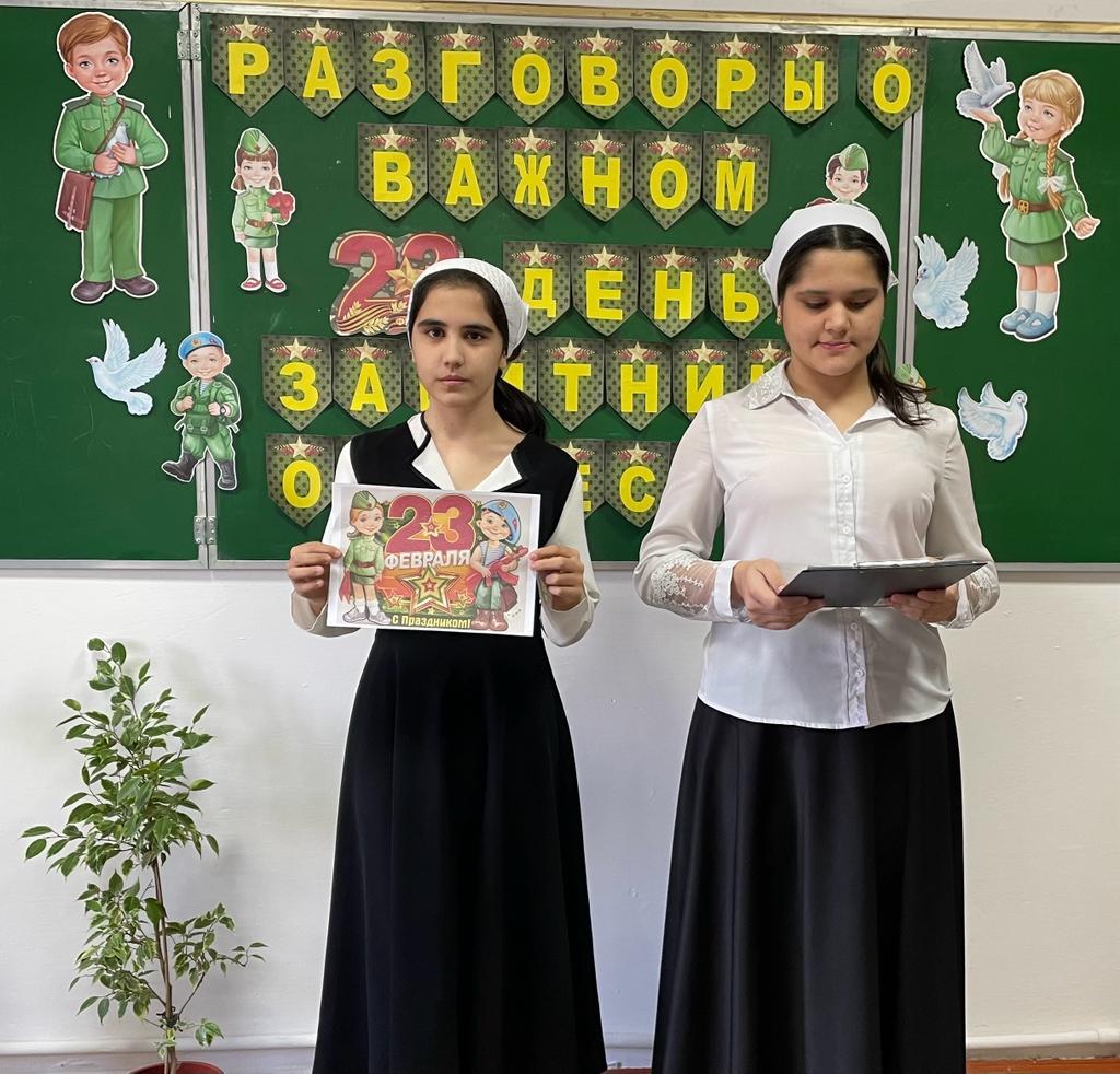 Гаибова Аминат Алхазуровна для обучающихся 8-В класса МБОУ «Шелковская СОШ N3» провела традиционный урок «Разговоры о важном», посвященный Дню защитника Отечества.