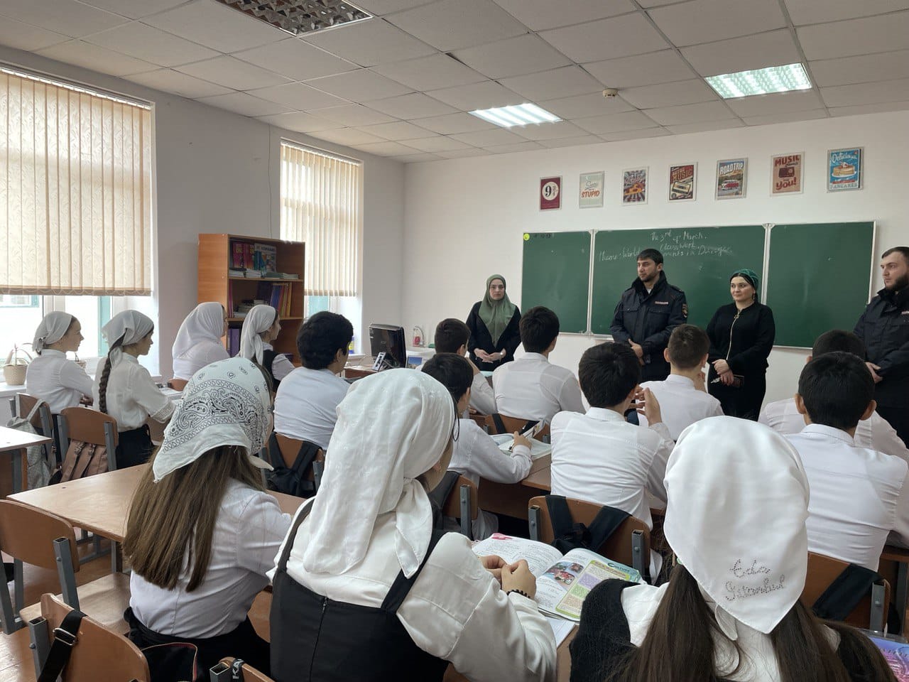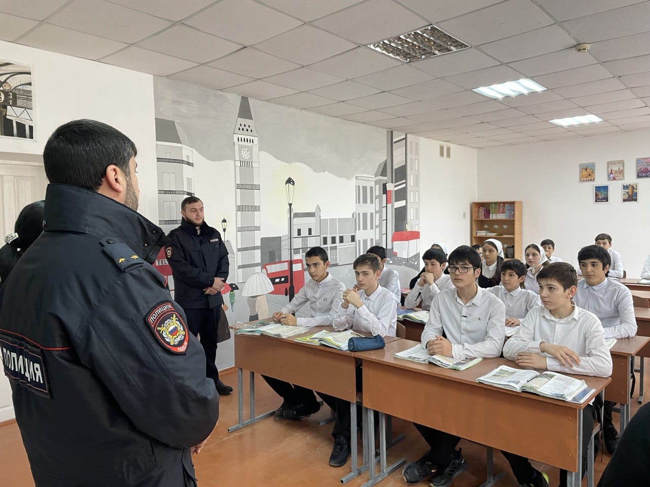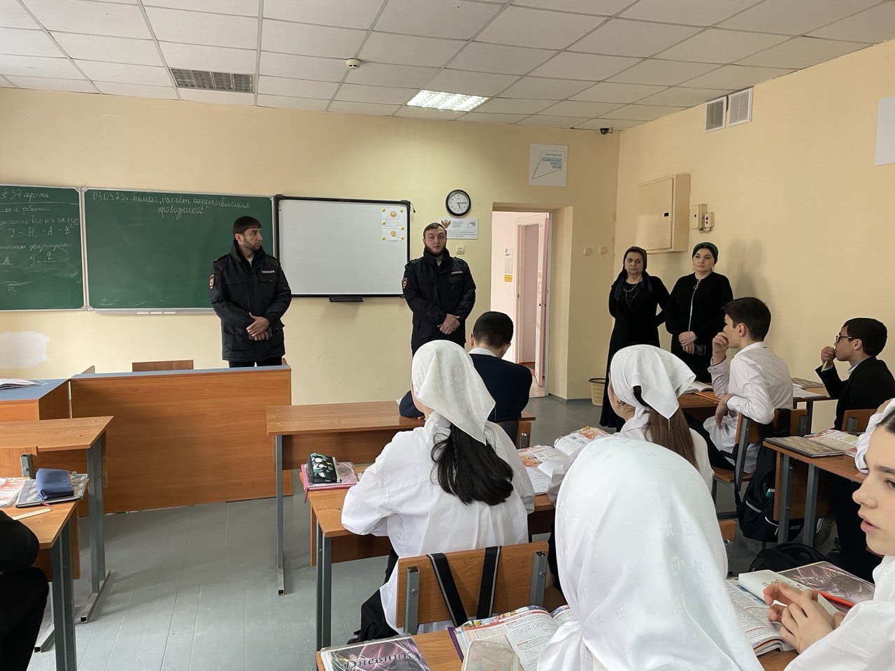 С целью профилактики преступности в молодежной среде, а также других правонарушений и преступлений, совершаемых несовершеннолетними, 3 марта 2023 года в МБОУ «Шелковская СОШ N3» была организована встреча обучающихся с инспектором ПДН ОМВД Росссии по Шелковскому району начальником ПДН, старшим лейтенантом Хасимхановым Имраном Зайнадиевичем и инспектором ПДН ОМВД Росссии по Шелковскому району, лейтенантом полиции Акбулатовым Исой Хамзатовичем.