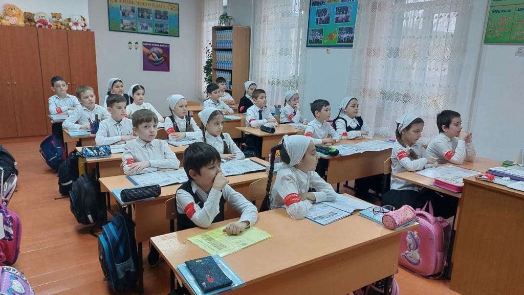 На этой неделе торжественная линейка была организована активистами ЧРОО ЕДЮО «Юные Кадыровцы» МБОУ «Шелковская СОШ N3» под чутким руководством зам.директора по ВР Гаибовой А.А.