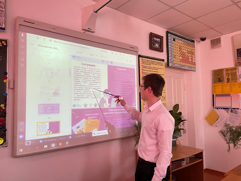 17 марта 2023 года в МБОУ «Шелковская СОШ N3» Мавсарова Сияда Алавудиновна в 9-А классе провела Всероссийский тематический урок «Финансовая безопасность личности в сети Интернет».
