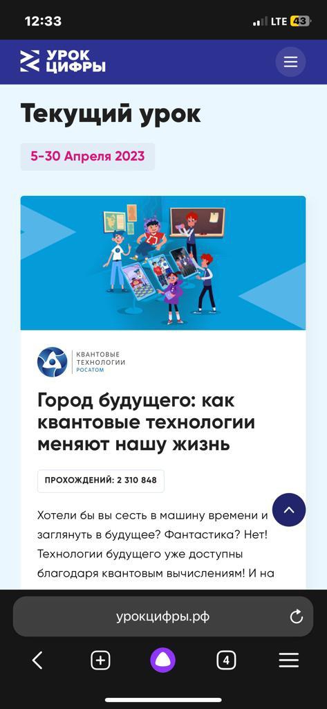 С 5 по 30 апреля 2023 г. в рамках всероссийского образовательного проекта "Урок цифры" проходят мероприятия по теме: " Город будущего"