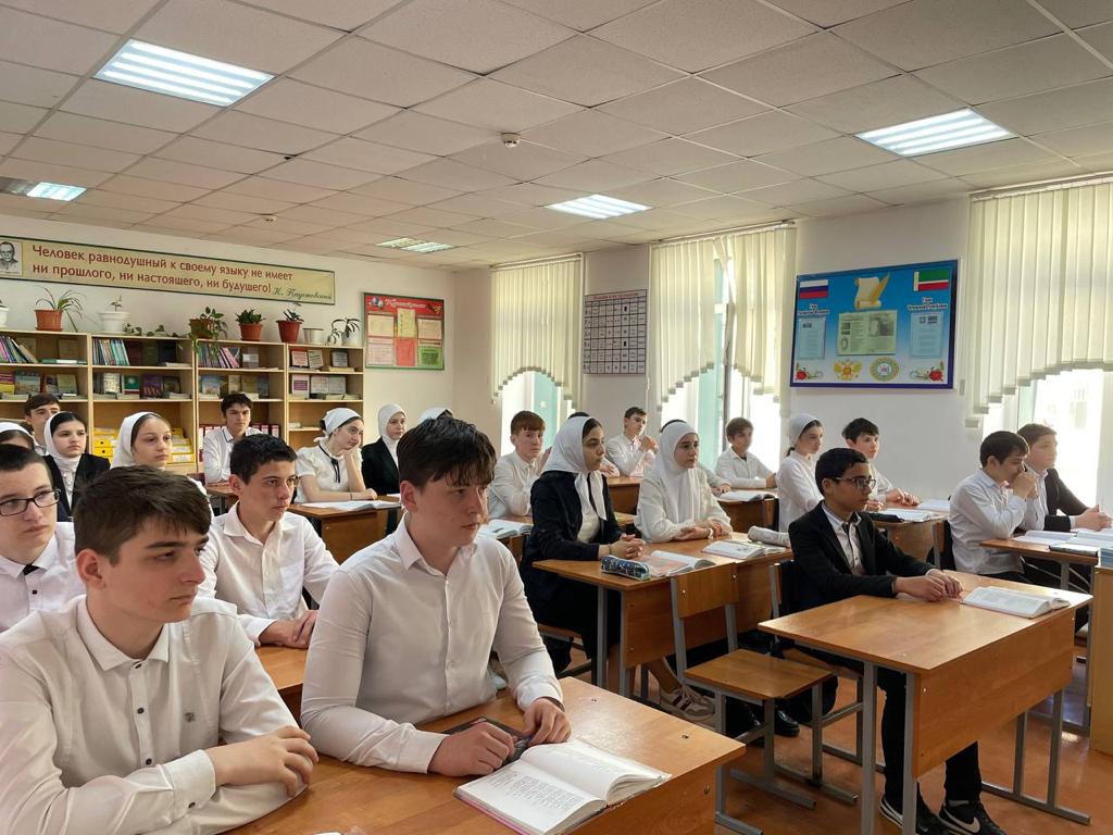 В преддверии празднования Дня Победы в МБОУ «Шелковская СОШ №3» прошел Урок мужества с приглашением участника специальной военной операции капитана Везербиева Арсена Висанбиевича, заместителя командира ботальона ОМОН «АХМАТ-1», находящегося в краткосрочном отпуске. Урок назывался «Герои среди нас». Главная цель патриотической встречи заключалась в том,чтобы молодые люди получали информацию от первоисточника – непосредственного участника СВО, чтобы они знали всю правду о происходящих на Украине событиях, чтобы донести до учащихся, что сохранение того мира, за который сейчас борются наши ребята, в их руках.