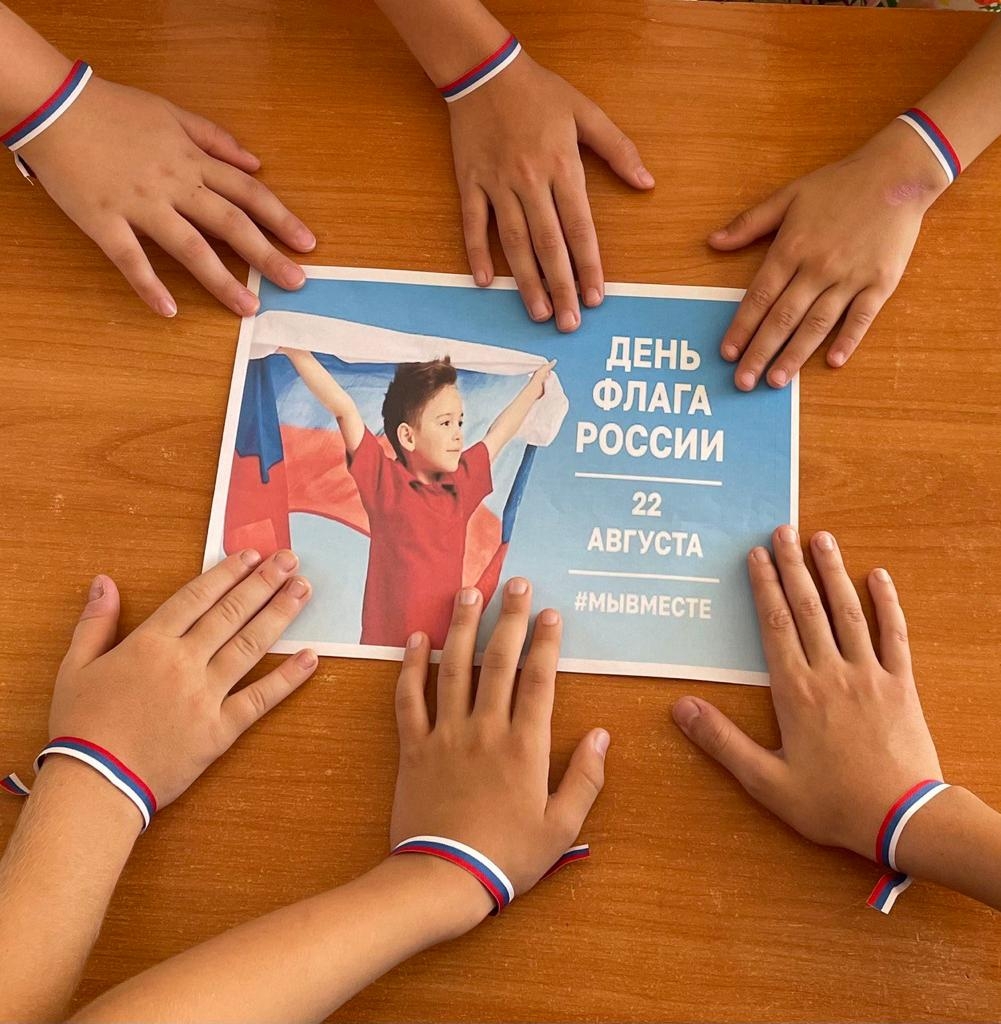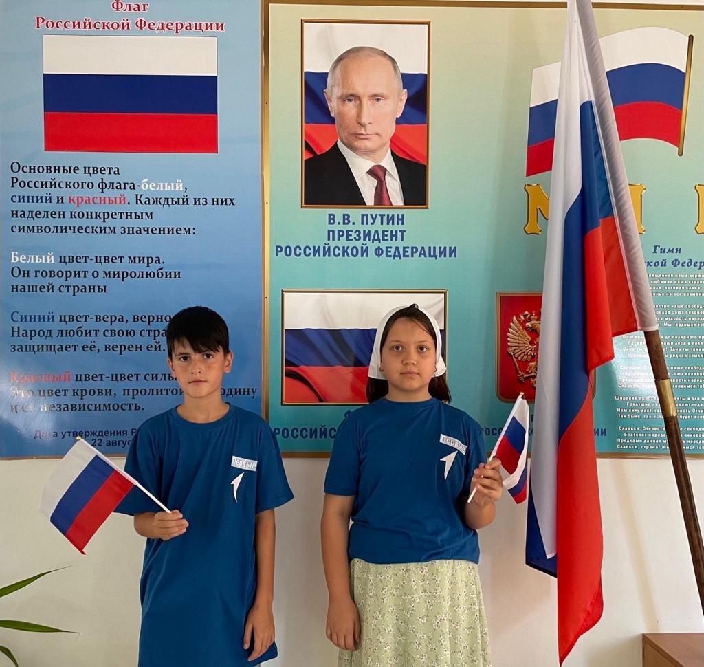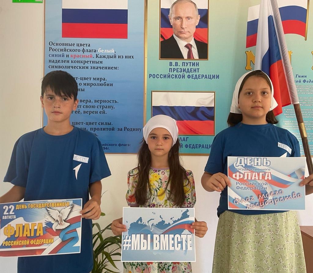 В честь этого дня активисты РДДМ «Движение первых» МБОУ «Шелковская СОШ №3» вместе с Гаибовой Аминат Алхазуровной, зам.директора по ВР стали участниками Акции #ФлагЕдинства.