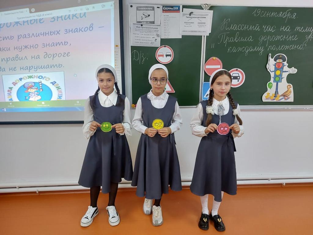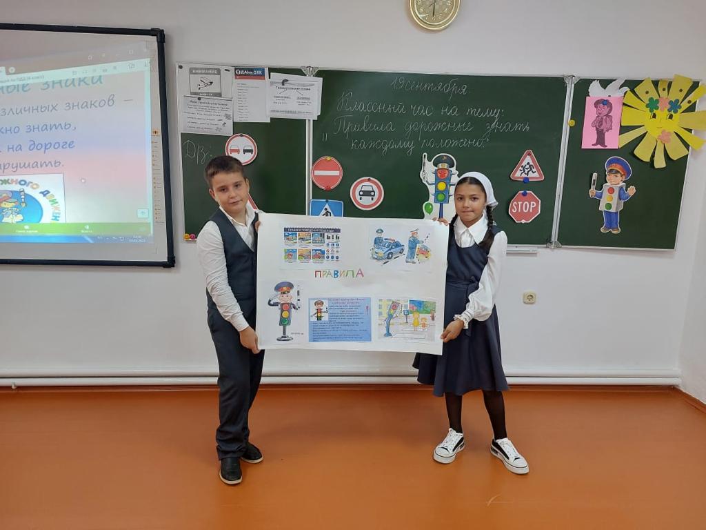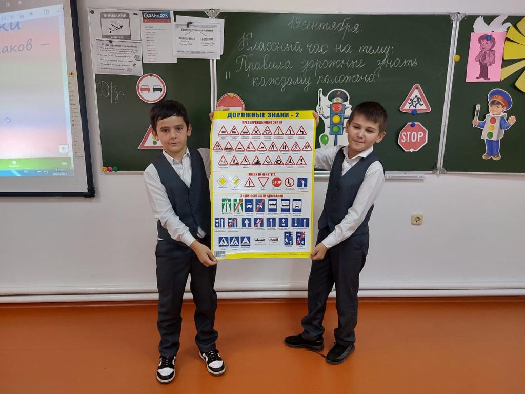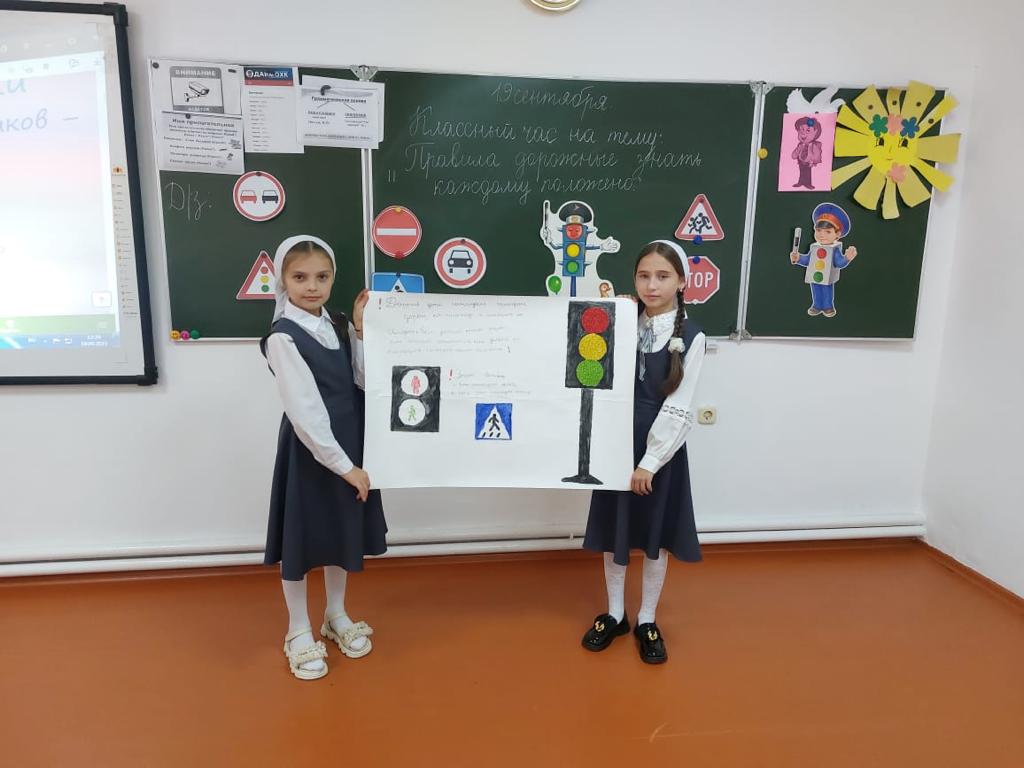 Серьёзной проблемой наших дней является безопасность детей на дорогах. 19 сентября 2023 года Хуцуева Ж.А. Для обучающихся 4 «В» класса провела классный час на тему: "Правила дорожные знать каждому положено!". Хуцуева Ж.А. рассказала обучающимся о дорожных знаках и правилах дорожного движения, о том, почему правила нужно обязательно знать и соблюдать. В конце мероприятия обучающиеся получили памятки и буклеты "Безопасность на дороге!"