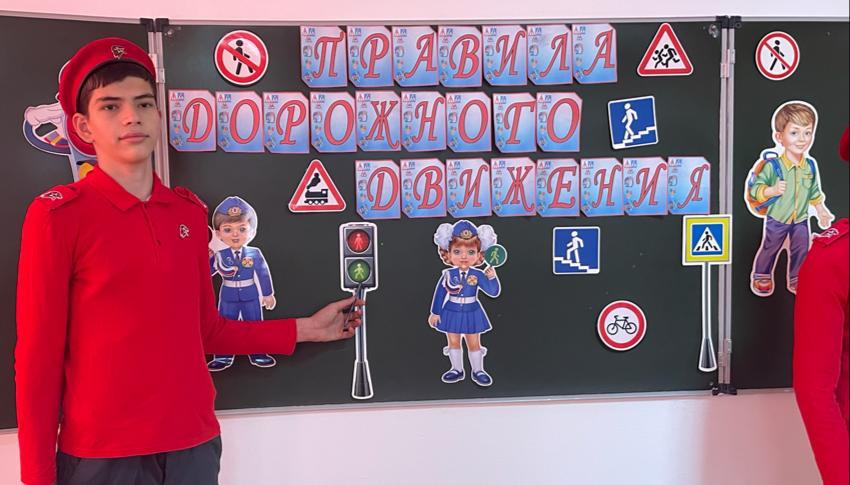 В ходе мероприятия была проведена квест–игра «В стране правил дорожного движения!», во время которой юнармейцы познакомили обучающихся с ПДД и с группами дорожных знаков.