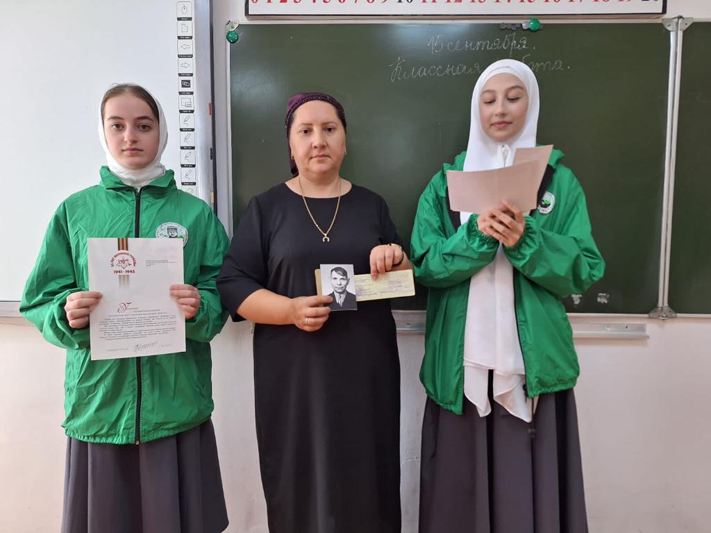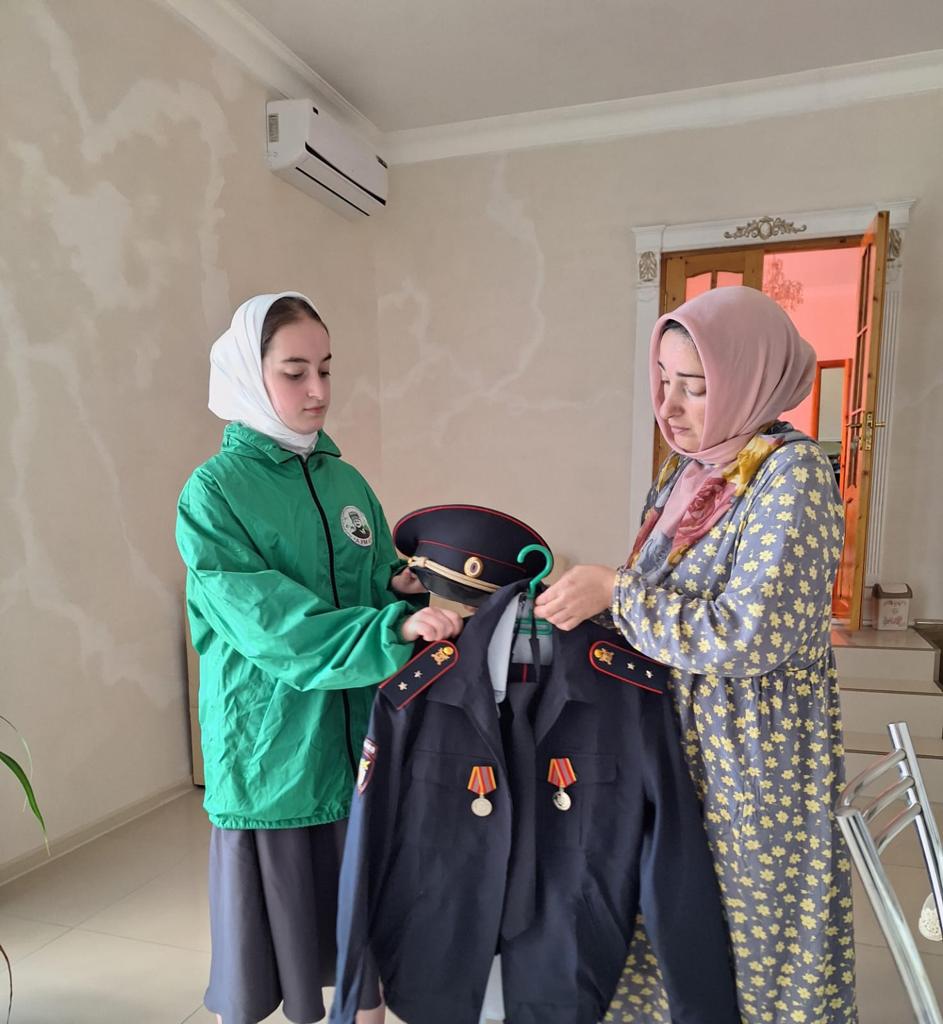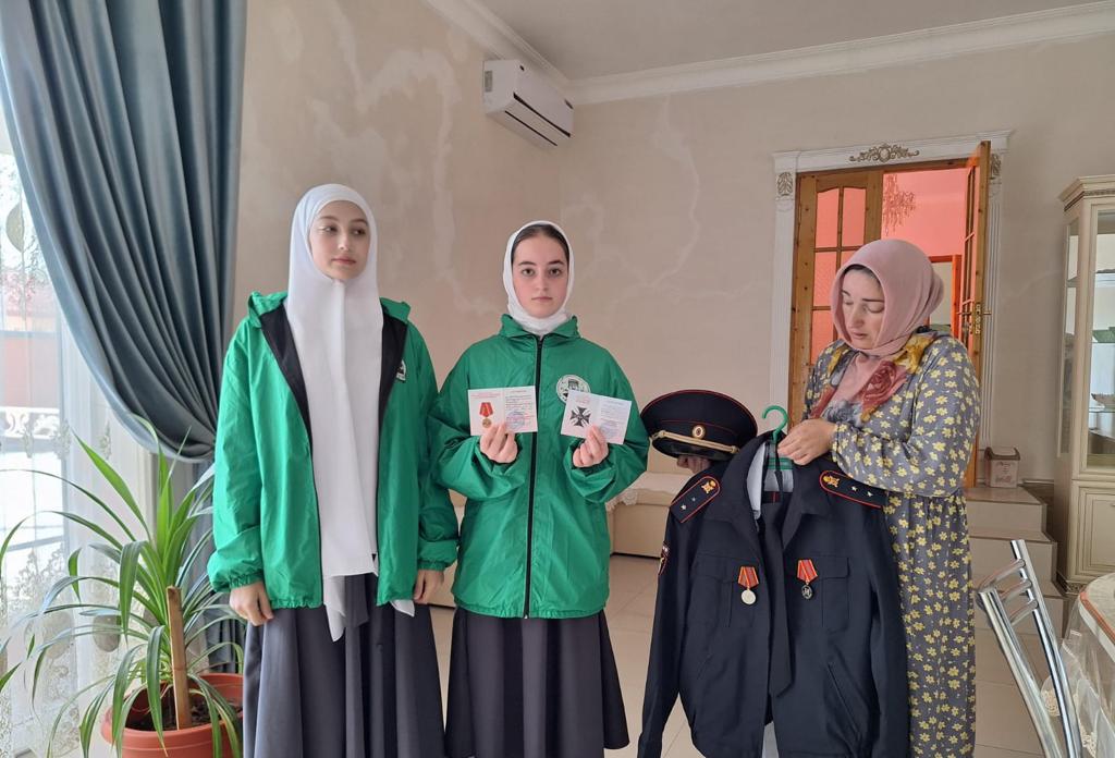 Активисты ЧРОО ЕДЮО «Юные Кадыровцы» посетили вдов участников СВО, которые передали в школьный музей личные вещи погибших. Все они получили наивысшую награду — звание Героя Российской Федерации за мужество и героизм (посмертно) в ходе спецоперации.