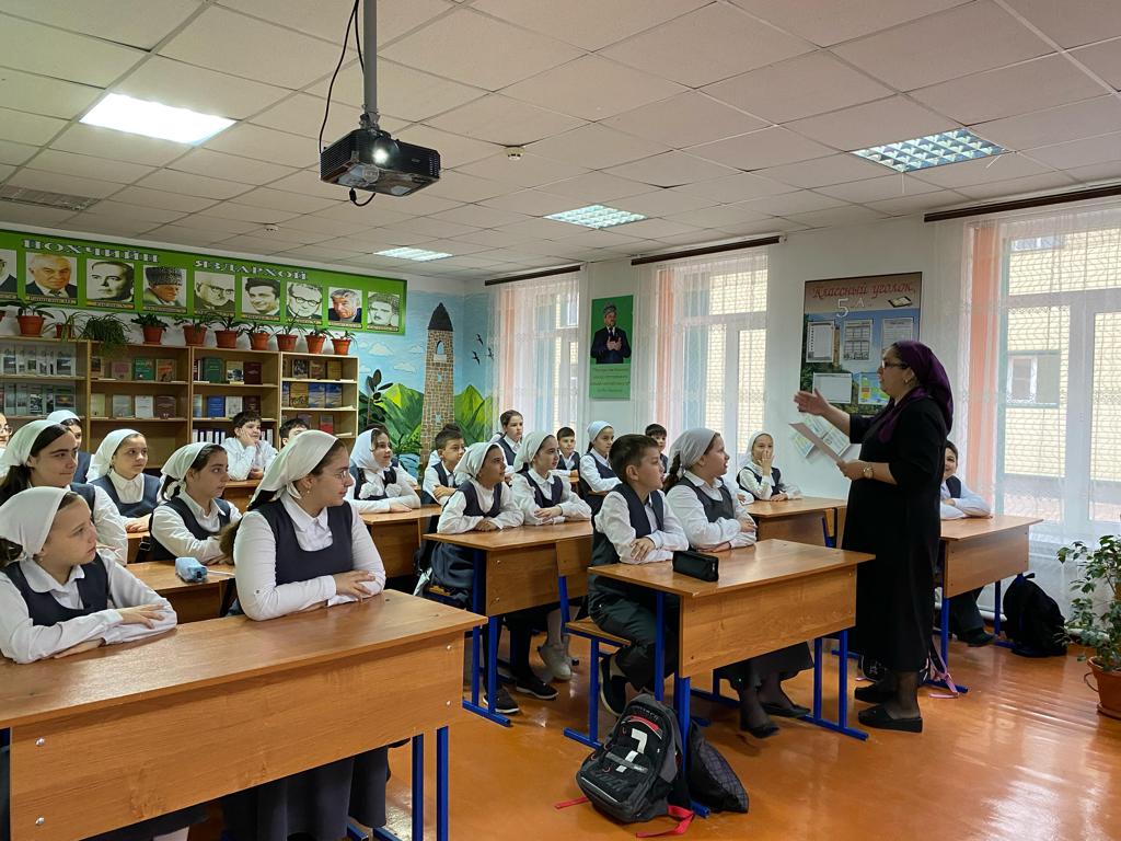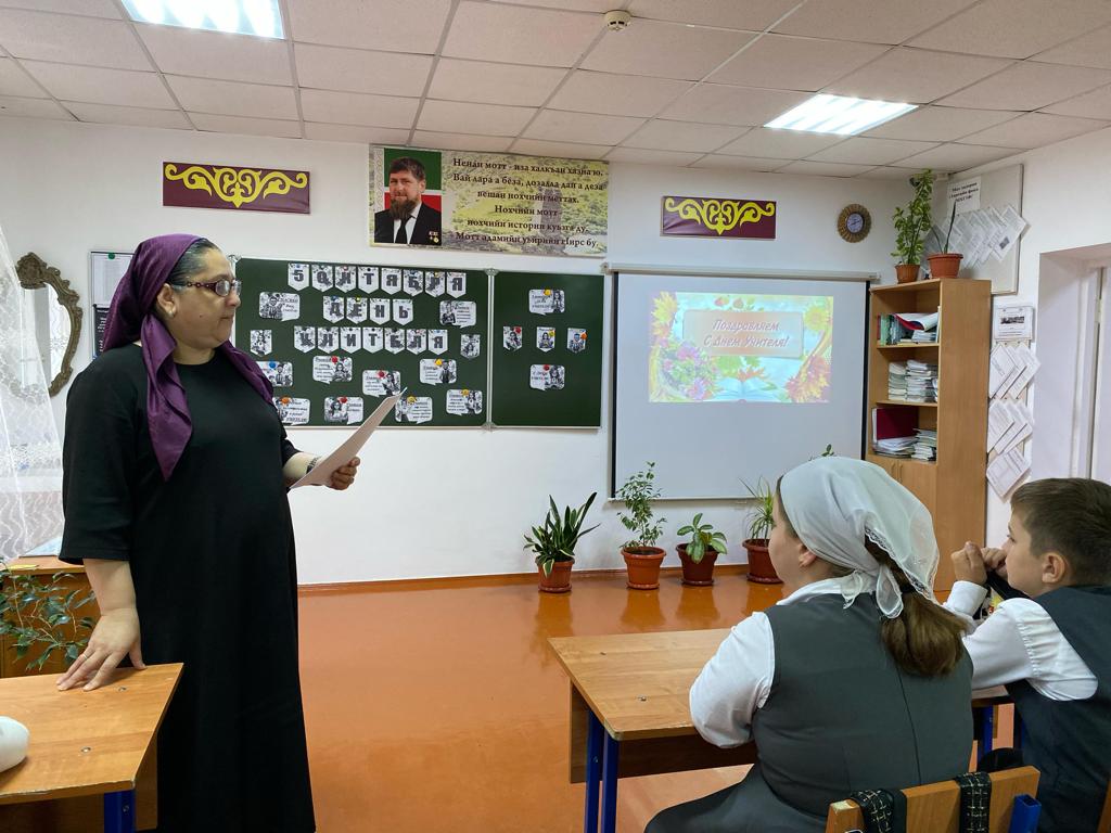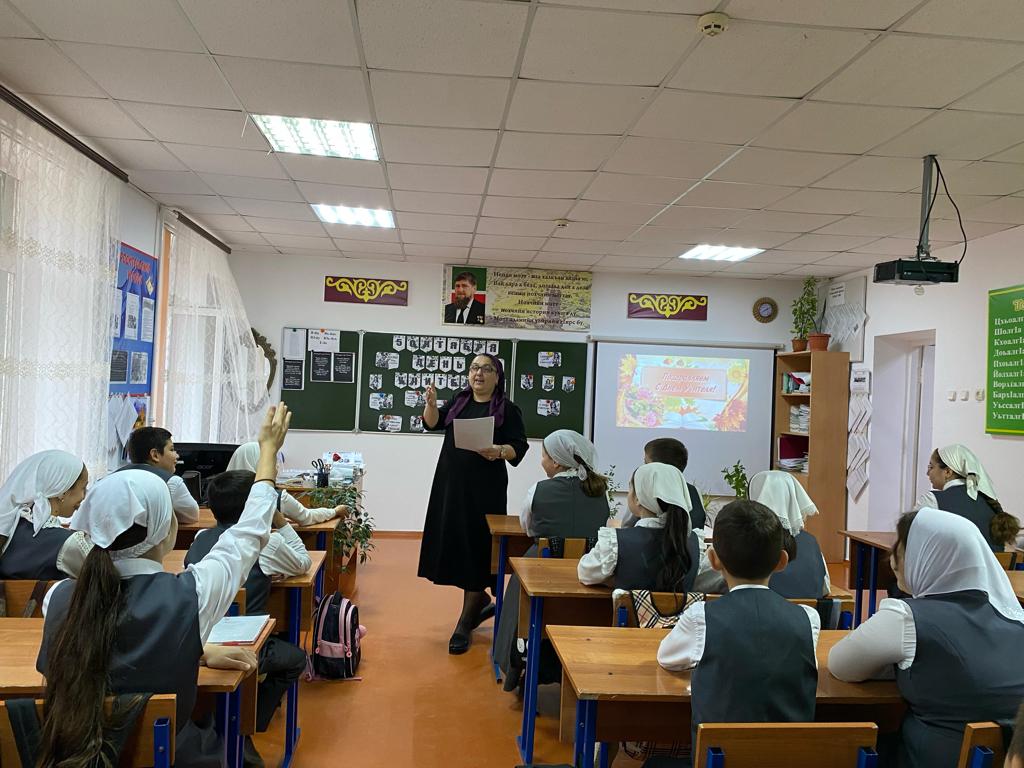 В преддверии праздника «День учителя» Джабаева Хадижат Имрановна, классный руководитель 5 «А» класса провела классный час на тему: «Учитель - не звание, учитель - призвание!»Хадижат Имрановна рассказала о том, что учитель играет очень важную роль в жизни каждого человека и его работа- тоже, своего рода, служение Отечеству. Сегодня, учитель – это человек, который направляет учащихся, даёт им самореализоваться, показывает мир возможностей, ну и самое главное, открывает мир знаний. В завершении урока обучающиеся поняли, что быть учителем – действительно трудная и ответственная работа.