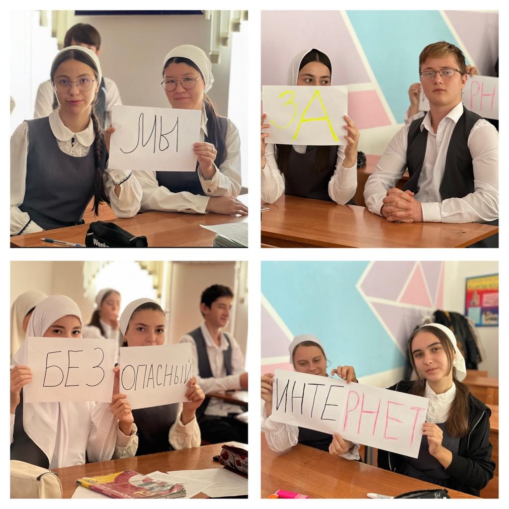 Эльдарова Эльмира Алаудиновна для обучающихся 10 «А» класса провела Всероссийский урок безопасности в сети Интернет, где ребята познакомились с правилами ответственного и безопасного поведения в современной информационной среде и способами защиты от противоправных посягательств в сети.