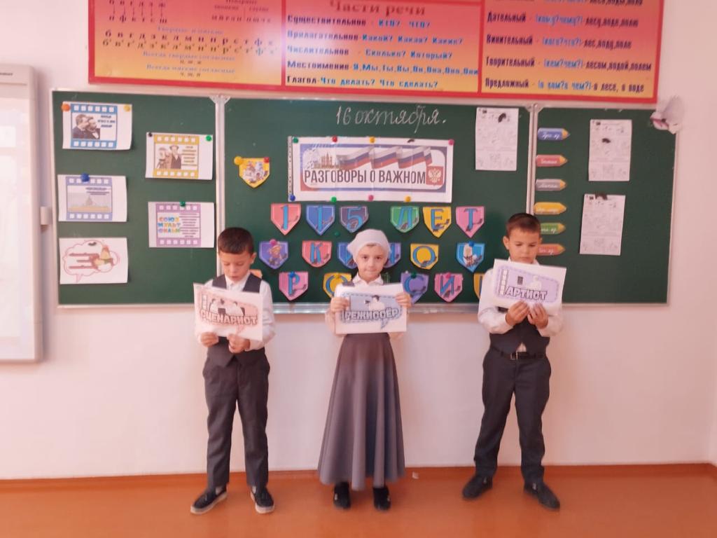 После торжественной церемонии учащиеся разошлись по классам на внеурочное занятие «Разговоры о важном». Тема урока «По ту сторону экрана - 115 лет кино в России». Ребята познакомились с историей создания кино и мультфильмов.📽🎬