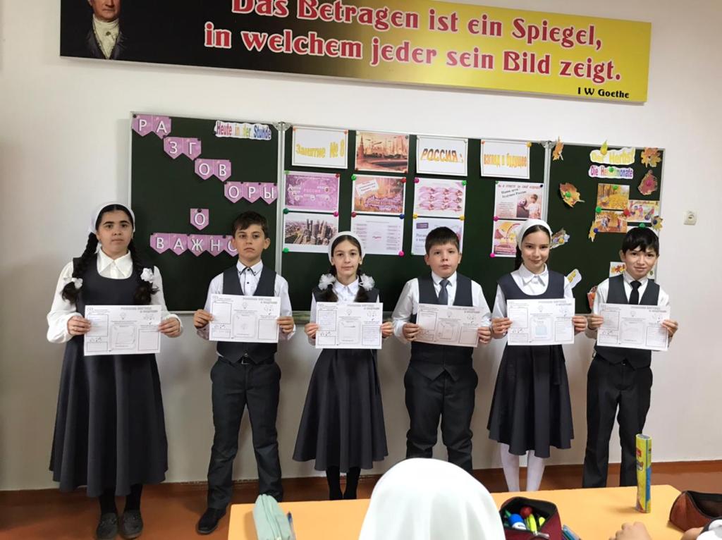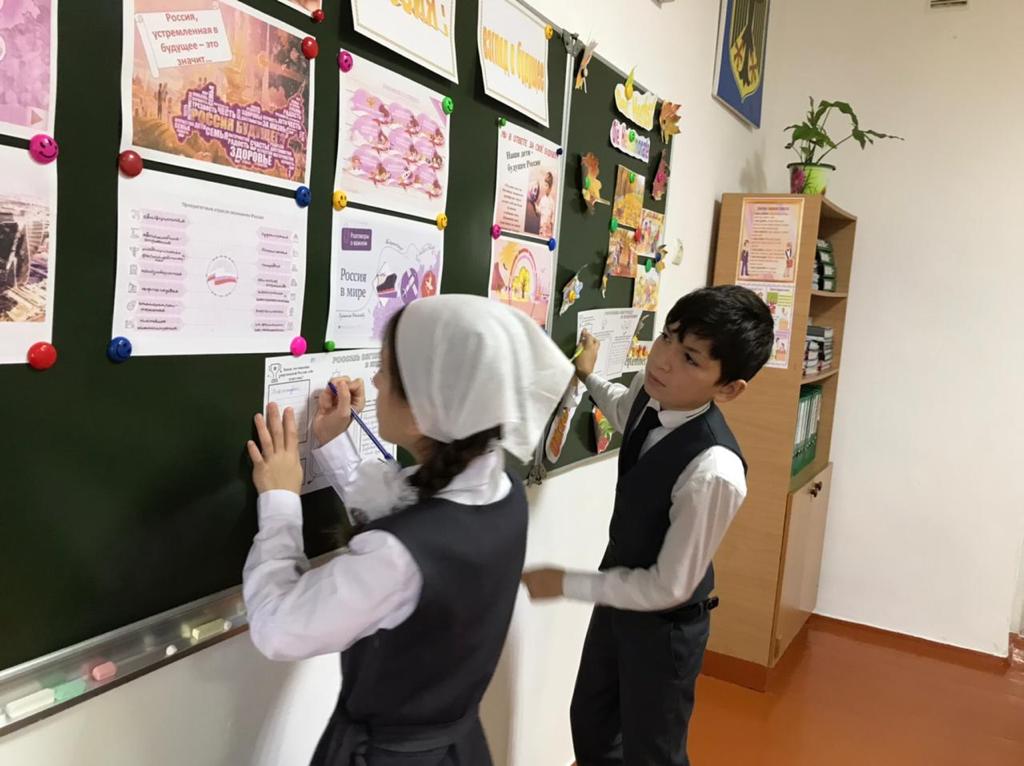 А для обучающиеся начальных классов «Юные Кадыровцы» организовали посмотр видеоматериала «Калейдоскоп достижений России», познакомили с понятием технологический суверенитет с целью расширения представлений о важных открытиях, сделанных российскими специалистами. С целью развития познавательного интереса к науке и технологиям, к профессиям завтрашнего дня после просмотренных видеороликов провели творческую работу с рабочими листами по теме.