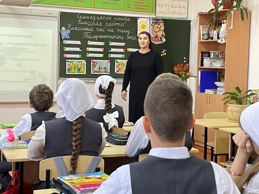 💫 Наша школа присоединилась к этому важному празднику. В честь этого дня, Витаева Таиса Ламсултановна рассказала обучающимся 4 «Б» класса о том, что значит быть толерантным - это означает уважать других. Толерантность также включает в себя умение проявлять внимание к другим и обращать внимание на то, что объединяет нас.