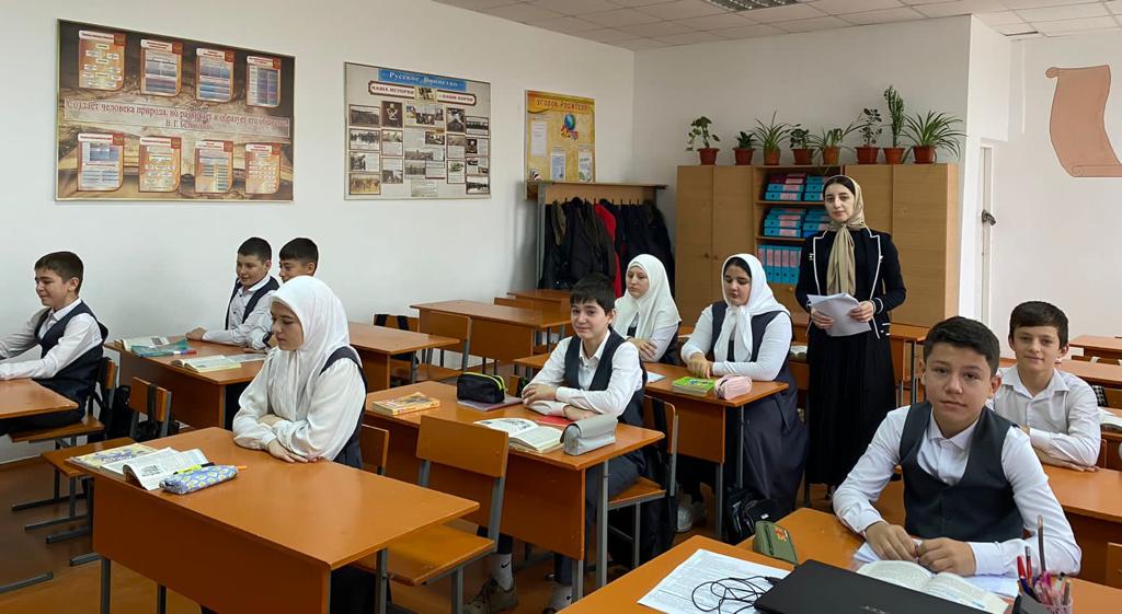 На уроке в игровой форме Хадижат Мовладиевна познакомила ребят с основными правами ребенка, провозглашенными в Конвенции о правах ребенка; сформировала представление об основных правовых документах: «Всеобщая декларация прав человека», «Конвенция о правах ребенка», а также поговорили о воспитании терпимости, взаимопонимания и равенства.