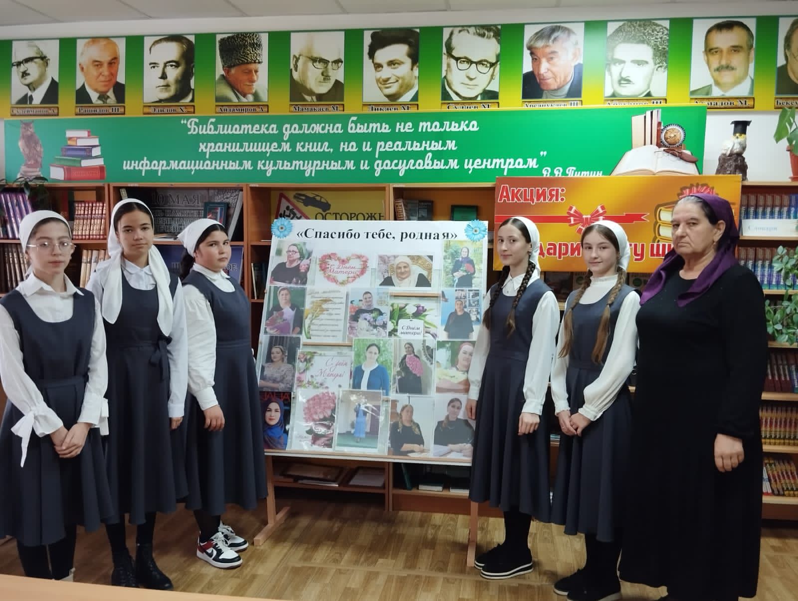 В ходе мероприятия заведующая библиотекой Джабаева М.А познакомила юных читателей с историей праздника, рассказала о том, что о матерях написано много произведений, сложено много песен, стихов.